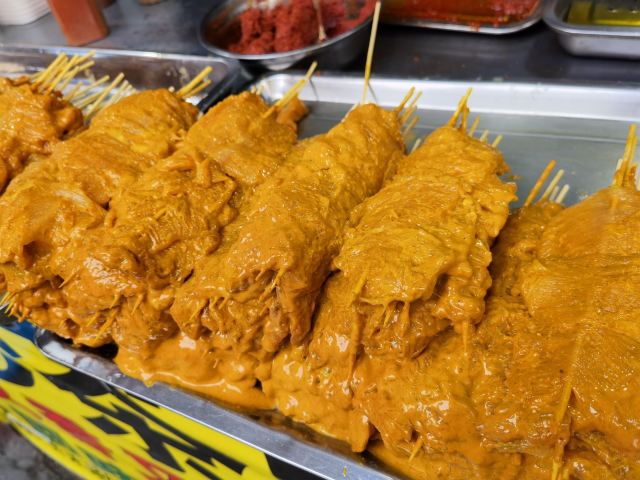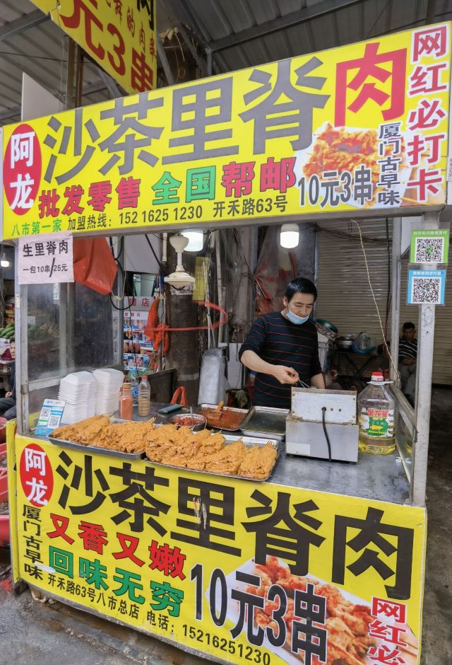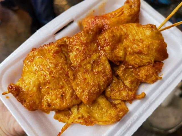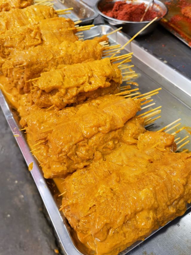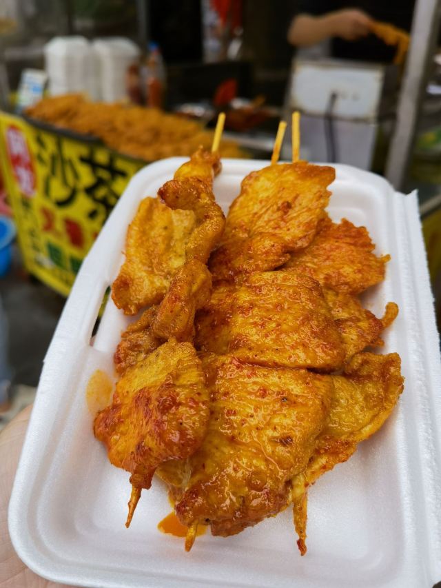 饥肠辘辘的逛八市,就看到这家里脊肉了,好像也蛮有名的,老板很热情,很多是老客人,10块钱3串,立马付钱! 里脊肉很大块,都是腌制好的,直接煎一下就好,真的是很诱人啊,里脊肉又香又嫩,超级好吃,真的是不容错过!