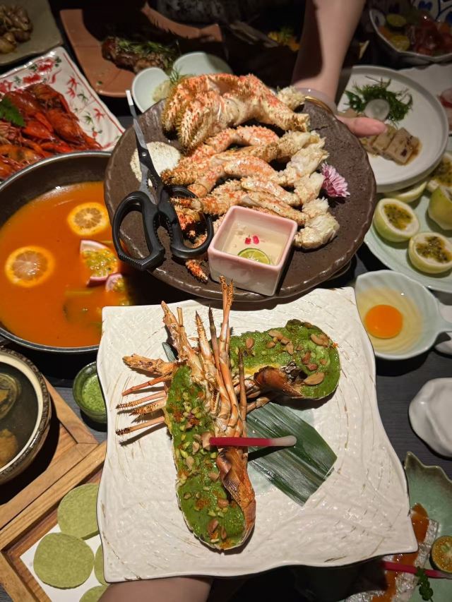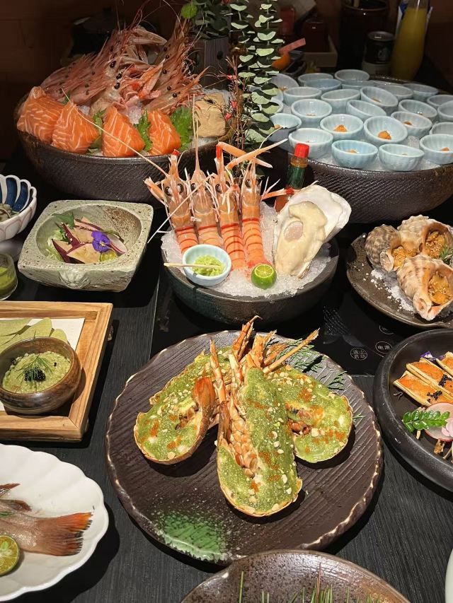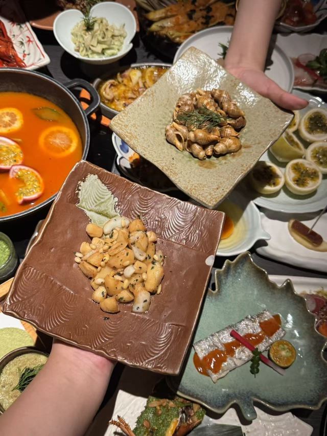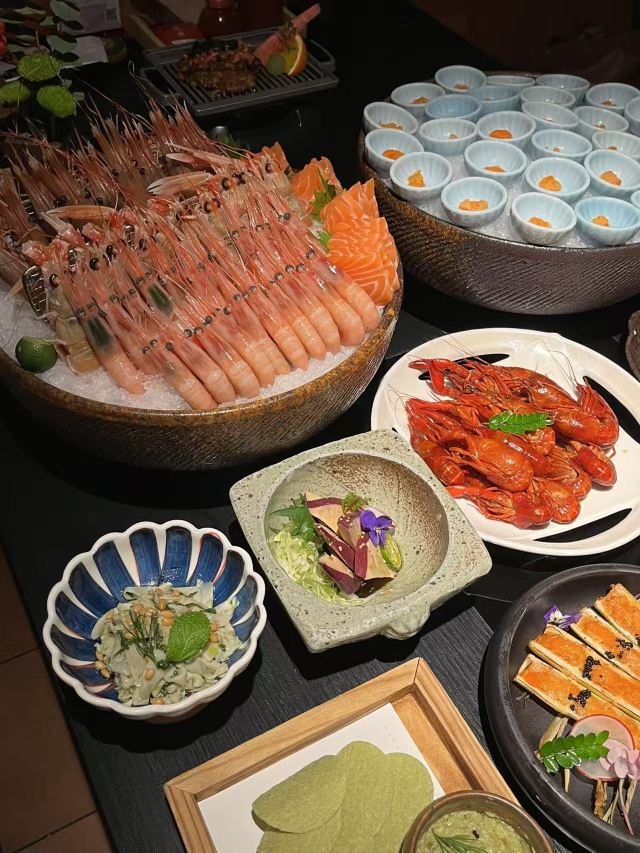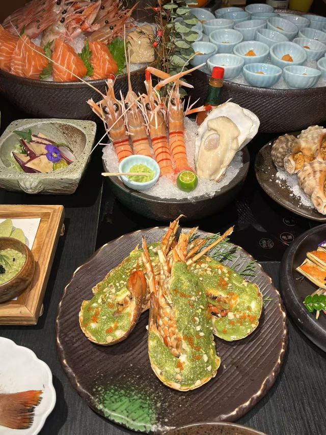 Hua Chao Japanese Art Cuisine Restaurant厦门无雷自助 闭眼点都好吃 真的太良心了,这家自助闭眼点都不踩雷,每款菜都好吃到上头,不管是高端食材还是普通菜品,都很用心,没有任何敷衍,新手也能放心冲。和闺蜜两个人点了一大堆,吃到扶墙出,幸福感直接拉满,再也不用为选菜纠结。 单点式自助太省心,不用抢不用挤,舒舒服服坐着点单,服务员送菜上门,全程不用自己动手,只管敞开炫。限量五选二选了新西兰鳌虾和青酱坚果焗龙虾,鳌虾甜糯Q弹,咬一口全是鲜汁,鲜到掉眉毛,焗龙虾芝士香浓郁,裹着坚果碎,香到上头。 东星斑肉质细嫩,皮Q弹有嚼劲,鲜到掉眉毛。生拌三文鱼酸辣开胃,泰式风味很独特,解腻又好吃。百香果焗海鲜酸甜解腻,果香混着海鲜的鲜,越吃越上头。 花潮料理艺食馆(SM新生活广场店)
