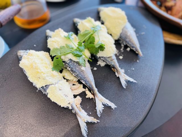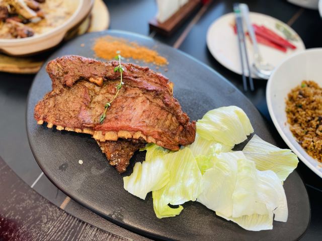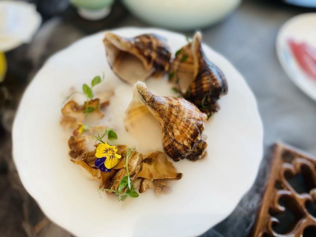 Amyseven边吃海鲜,边看海景,还具有闽南特色的餐厅就在这里。 🌿环境: 外观是红砖古厝双翘燕尾脊,进门一个大院就能看到无遮挡海景,气派的海鲜池点菜区,包间全部都是落地窗海景,这样的地方吃饭有海景配着更美味了。 🌿菜品: 「经典鲍鱼姜母鸭」传统的姜母鸭加上鲍鱼,更加鲜香,鲍鱼肉质紧致,鸭肉姜丝是绝配了。 「大院蚝仔烙」不同于大众的海蛎煎,这个蚝仔烙有脆脆的焦香裙边,都抢着吃。 「姜丝焗巴浪鱼」没成想巴浪鱼成为新宠了,直接盐焗,吃的就是一个鲜,巴浪鱼刺少肉多吃起来很过瘾 「爆汁牛小排」有个很有仪式感的开动口号,肉很嫩,但是不会生,汁水饱满。 「海味土猪手」看起来白白的清炖,但是加了海鲜干一起咸香不肥腻,胶原蛋白都溢出来了,朋友吃的停不下来,还打包了一份回家继续吃。 🌿服务: 前台迎宾指引带进包间,倒茶上菜都很迅速,也一直在尽职尽责的完成客人的需求。