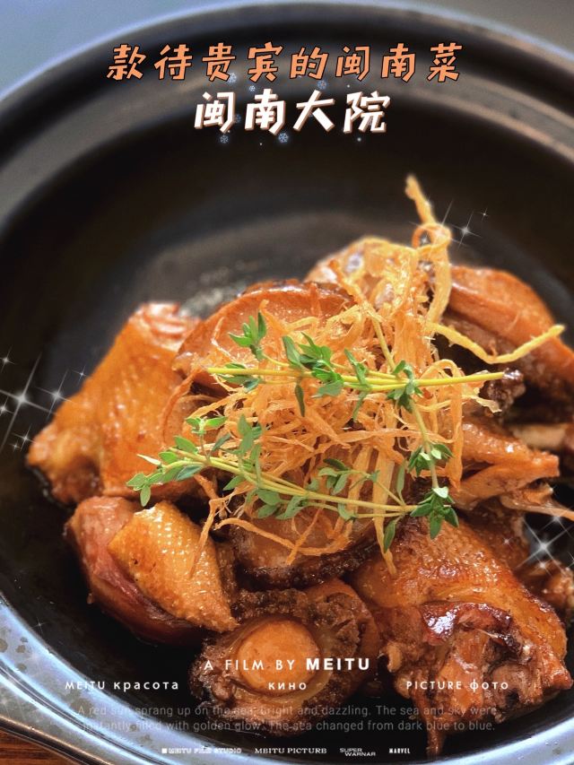 🤔是不是常苦于款待贵宾去什么餐厅?💁🏻♀️小歆这就推荐一家适合款待贵宾的闽南菜餐厅。 - 🏠店名:闽南大院 🈺️时间:17:00~21:30 💰人均:200元 📍地址:环岛东路2188-16 🚌公交:观音山商业街站(还要步行较远) 🚗自驾:导航到此周边可停车,用餐可免3小时停车费 - 闽南大院是臻府旗下🆕全新闽菜餐厅,占地面积可谓是惊人,独栋的骑楼外更有⛲️超大户外花园,餐厅内更是以包间为形式,还配备了茶几、洗手间,👏🏻完全一个私密空间。 - ✨小歆推荐菜: ☑️经典蚝仔烙 # 真香现场,🍳金灿灿十分诱人,入口酥脆,🦪满满的生蚝,鲜味十足,一点也不腥。 ☑️捞汁竹签虾 # 绝对良心,🦐新鲜又大只,一点点黑头都没有,口感Q弹饱满还入味,🧂花椒的香气不多不少刚刚好。 ☑️松茸元贝肉汁汤 # 内有新鲜松茸还有大元贝、绣球菌、黑豚肉,汤汁浓厚醇香。 ☑️芥末凤爪 # 芥末一点也不呛,味道适中,韧性也恰到好处,弹牙爽口。