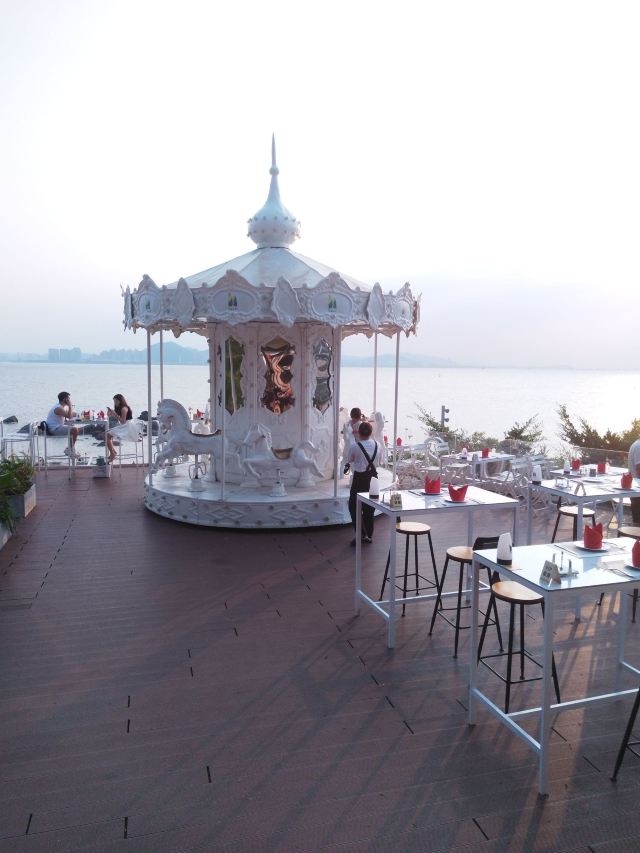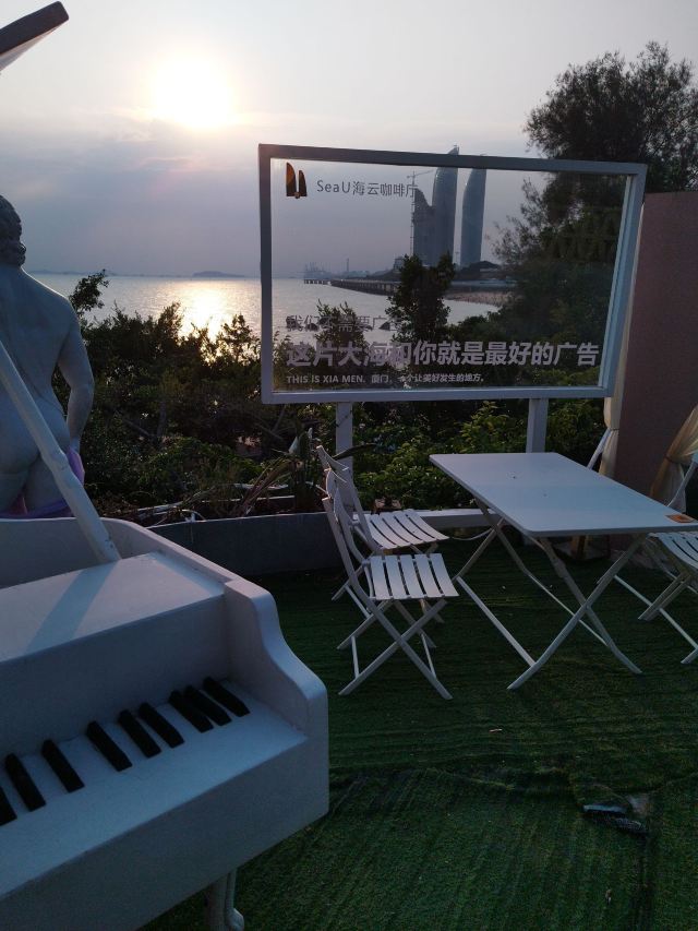 Leesing小歆真是太意外了,看到有不少网友分享了这么一家有🎠旋转木马的咖啡厅店,小歆也是迫不及待来打了这波卡,毕竟这么🎈梦幻美好的店铺小歆不想错过。 - 🏠店名:Sea U海云咖啡 💰人均:95元 🈺️时间:9:00-23:00 📍地址:环岛南路256-1 🚌公交:厦大白城站 🚗自驾:停在胡里山停车场,每小时自费6元 - Sea U海云咖啡店铺还是蛮大的,有两层,二楼是室内,三楼是露天,最期待的🎠旋转木马就在店的三楼区域,不过是⛔️停止状态的,也不知道能不能上去旋转一下。 - 在Sea U海云咖啡消费的海景双人下午茶,虽说是下午茶🌛晚上也可以用哦。 🥥斑斓超椰、🌊蔚蓝海岸都好喝哦,两款是不同类型,斑斓超椰有淡淡的🌿斑斓香味还椰奶香气、蔚蓝海岸则是❄️一杯超清爽的饮品非常适合夏天。甜品本有4种选择,但是小歆来的时候只剩下🌰榛子慕斯,不是很心仪的甜品偏甜略腻。