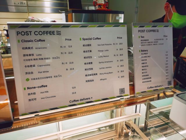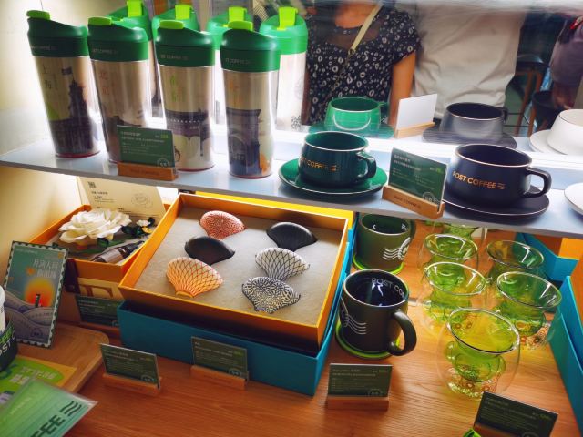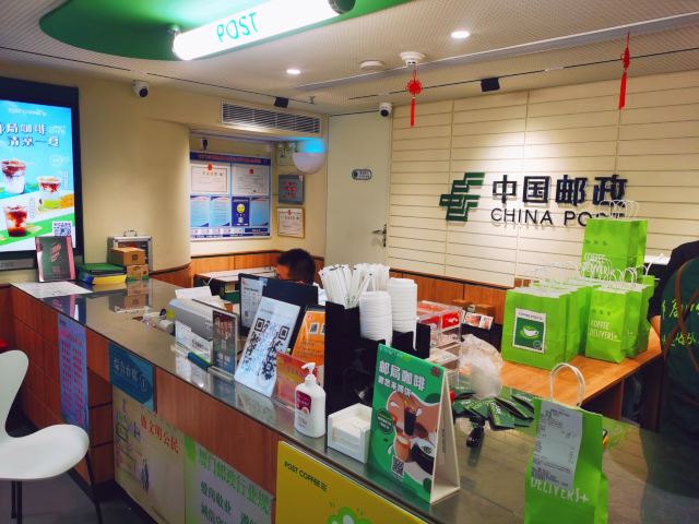 不知所云18厦门美食|在邮局里喝咖啡 🏠邮局咖啡(国贸店)位于湖滨南路388号厦门国贸大厦一楼,依托原先邮政服务场所,将百年邮政与咖啡业务跨界结合,改造成一个可以社交、品尝咖啡,体验邮政文化的全新场景😯。 📭咖啡店墨绿色邮局风的门头、标志性的邮筒以及贴着邮票风标签的咖啡杯带给我满满的中国邮政元素,很有复古风和怀旧风👀。店里售卖品除了咖啡、茶饮、甜点之外,还有不少邮局周边,我最喜欢的周边是虎爪杯🐯,造型好可爱。店里常见的咖啡种类比如美式、拿铁、卡布奇诺都有,还一些自创的新品。 ☕邮点硬核:邮局咖啡的新品,👀奶油顶+开心果碎,底下是糖浆+牛奶+咖啡液。这是一杯奶味甜味比较浓郁的饮料,甜度在瑞幸夏末海盐和星爸爸的太妃焦糖之间。以龙舌兰soe为底的饮料很适合冰饮,伴着奶油一起喝还有点百利甜拿铁的味道,奶油顶感觉就是常规的香草奶油,咸甜口👍🏻。咖啡里的糖浆太抢风头,偏甜,甚至盖过了奶油的甜度。同样是邮局的坚果咖啡,我会更喜欢好事花生一些👏🏻~ 🏠咖啡的价格在20-30元之间,在邮局喝咖啡真有趣。