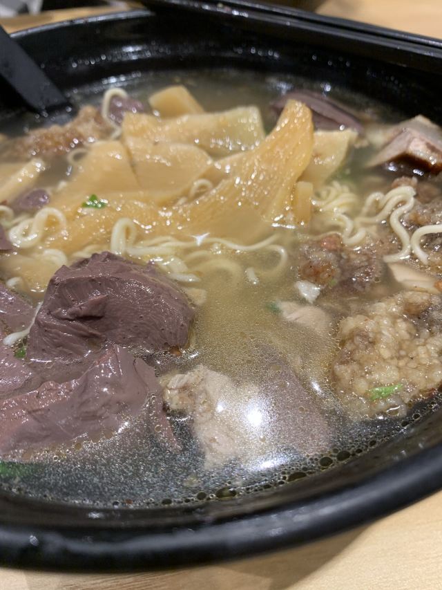 加班的晚上,来一碗热气腾腾的面。想起上次想吃胖金莲,却没开门,这回补上。 店开在新兴街的尽头。环境不错,有点小清新。 可选择的配料不少。现炸出来的油条好吃,鸭肉不错,鸭血很嫩。就是汤头超级咸。醋肉偏硬。 性价比还算