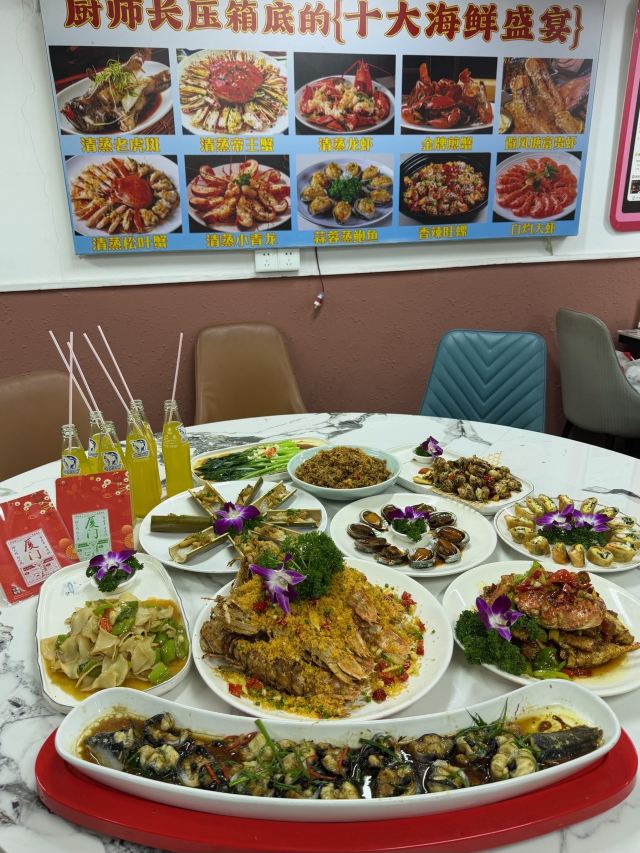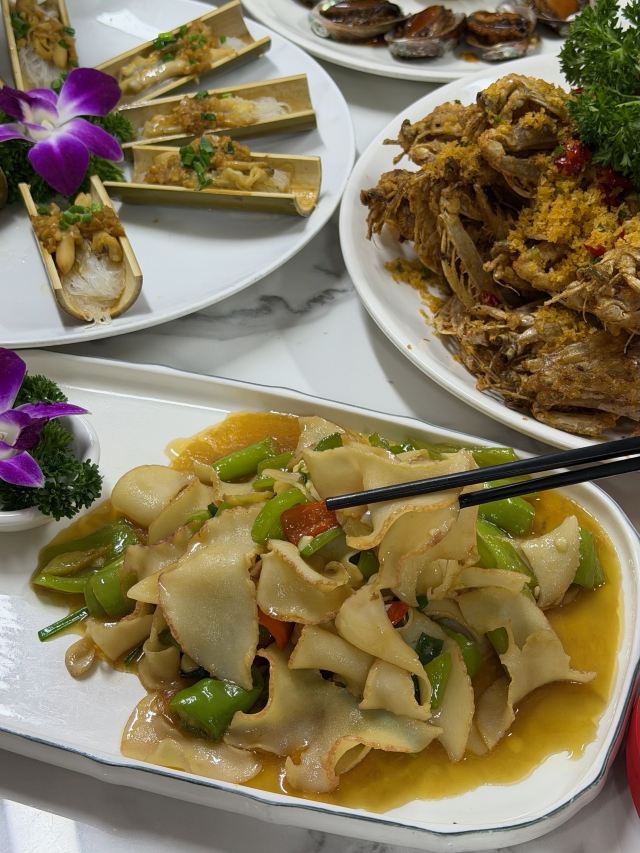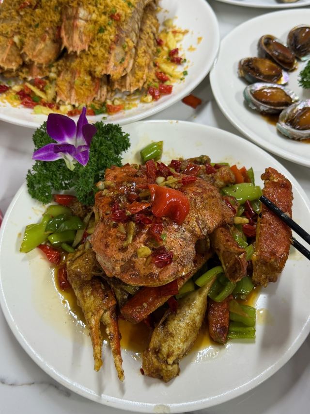 YoYo_9C0Q6F1L老厦门人都在哪里吃海鲜啊???🤔 🙋♀️本厦门人有发言权 这家海鲜大排档环境超local 就开在八市旁边 明档点菜超直观 五一要来厦门旅游的可以来品鉴一下 【必点菜单】 ✔帝王蟹:疯狂安利,超级好吃,这种做法无敌了!! ✔大波龙:非常入味,就喜欢辣辣的味,过瘾! ✔蛏王:超级大个的蛏子谁不爱,搭配粉丝一整个爱住!! ✔️猪脚煲:胶质多多好软糯!而且这个肉是那种糯中带着点Q弹的感觉~ ✔️蒜茸生蚝:巴掌大蚝肉+金银蒜,每一个都是白白嫩嫩没有什么沙子的,吃起来真的好爽! ✔️避风塘富贵大虾:比我小臂还粗!酥脆面包糠裹着虾膏尊嘟绝了! ✔️鱿鱼蒸豆腐的汤汁要浇饭!嫩嫩的豆腐加上QQ的鱿鱼真的太哇塞啦