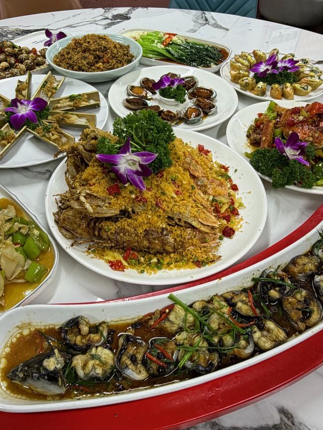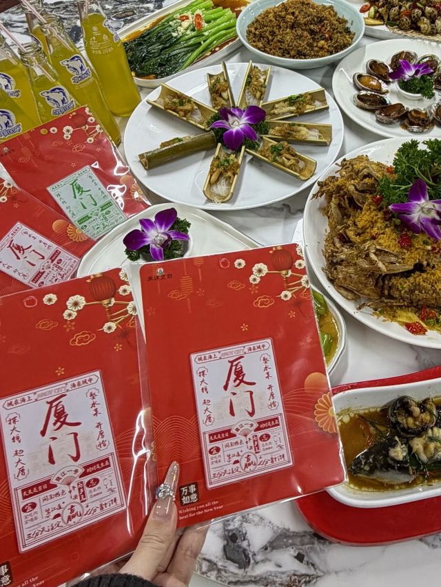 厦门炒面线,闽南姜母鸭,香辣蟹,扇贝生蚝拼盘,蒜蓉开边蒸小青龙,手臂粗富贵虾,清蒸本地石斑鱼,干煎大膏蟹, 椒盐皮皮虾, 招牌松叶蟹, 香辣波龙