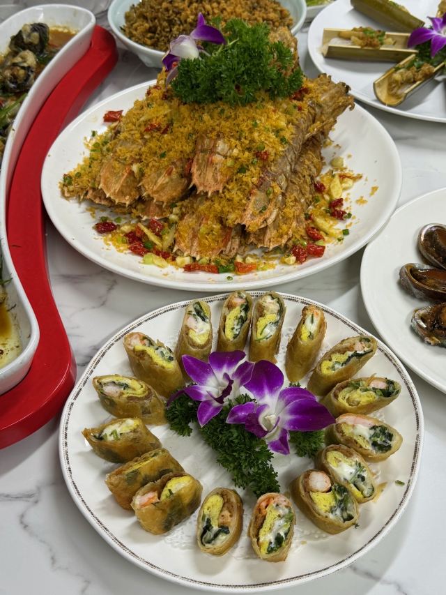 LU JIANG YI HAO朋友来玩我都会直接带去吃这家!! 就在八市旁边鹭江道这边 逛完菜市场刚好 进门就是超大海鲜池 想吃什么现捞现做 价格都标的清清楚楚 不用担心被宰👌 ✔️竹筒蒜蓉粉丝蛏皇 每桌都点的招牌!蛏子每一只都超肥美 蒜蓉味好足 粉丝吸饱了汤汁直接光盘 ✔️豆豉蒸鳗鱼 鳗鱼好嫩 豆豉蒸出来特别香 就是这种简单做法才吃得出新不新鲜 ✔️避风塘帝王蟹 蟹肉真的鲜甜 避风塘做法香到壳都想嗦 🦀碎屑拌饭也巨好吃