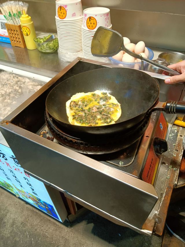 海蛎煎,我一直觉得是台湾小吃,没想到也是福建小吃,其实就是我们东北的鸡蛋饼,只不过料更足一些,放了蛎蝗,还有黄瓜之类的东西,其实味道真的太一般了,没吃出有多好吃,尝尝就可以了!