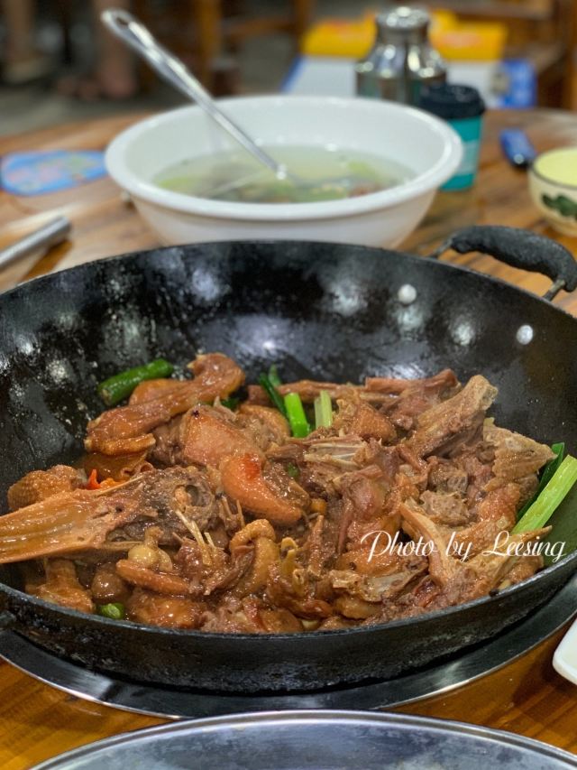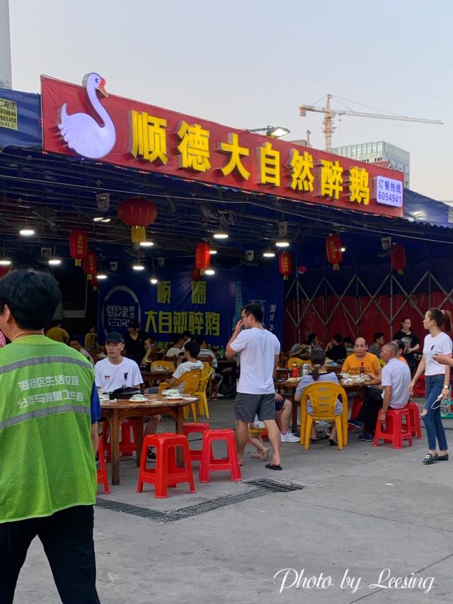 Leesing小歆醉鹅厦门最出名的就是这家了,顺德大自然醉鹅,在海沧海投这一区域,生意那是好到没话说,晚上来的店里,顾客是坐得满满的,到处可见的喝酒吃肉景象。 顺德大自然醉鹅的环境就是最早的排档风格啦,没有什么装修可言,所有人都在半露天式的环境下吃吃喝喝随心所欲。 入座后店员会直接询问是否现在就上醉鹅,别犹豫,别等人,提前上,毕竟还要在桌上煮好久时间呢,一份醉鹅固定5~6斤,不过一只是肯定没有的啦,比较诱人的就是整整倒了一瓶红米酒,然后还产生了火焰,酒香四溢特别诱人,等待还是有好的回报的,鹅肉特别鲜嫩,不会干涩,而且香味浓郁。 鹅肉吃光可以再点一些配菜,店员会在锅中加入高汤,当成火锅进行烫食,推荐鹅血、萝卜、腐皮这类可吸味的菜品,毕竟锅底鹅肉酱汁很香。
