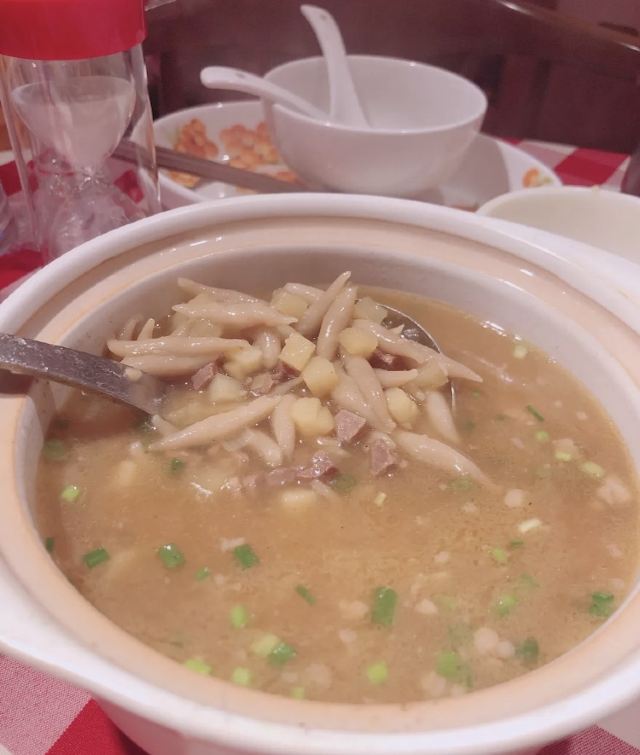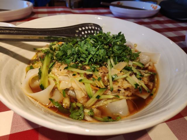 吃了几次西贝,面食确实不错~ 他家生意一直很好,翻桌率挺高的。 这次跟小伙伴们来中华城,同程的伙伴有带娃,我们就选择西贝吃饭~ 西贝莜面村(中华城店)位于中山路思明南路189号中华城CHINACITY南区4层,靠近扶梯,玩具城这头。 红白相间的桌布是他家的一大特色,营造一种温馨家园的风格。 有带小盆友的话会送小盆友小米粥一份。去的时候还给小盆友送了围兜,非常稀饭❤ 推荐:羊肉串,羊肉汤筱面鱼鱼,面筋,蒙古奶酪饼。 他家羊肉串价格还算实惠,味道确实很香! 羊肉汤筱面鱼鱼,就是面条是小块条状的,比较带有嚼劲,小小个像小鱼的造型,小盆友比较喜欢的一款。 黄米凉糕,同行小伙伴的最爱,表示口感正宗❤ 蒙古奶酪饼,超级香,热热的吃最赞,芝士会拉丝! 面筋,微辣,开胃!
