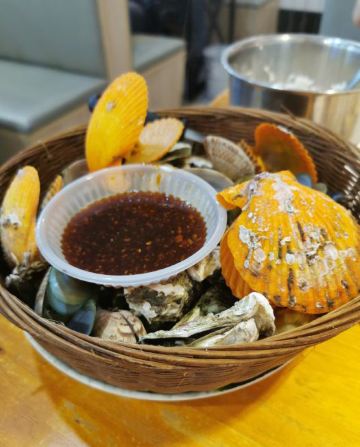 奔走的默默😍曾厝垵的海鲜餐厅~ 🌹这家店算的上是曾厝垵较靠谱的店了! 🍀最早店里的装修比较简单,现在生意做起来了,装修也有所精致了!店里有好几桌卡座,也有小包厢...同时适合多人用餐! 👍实际亲测吃过几次他们家,要说代表性的菜色,他们也算做到了!想到阿里元最先想到的就是他们的|贝类拼盘^🍡搭配店家秘制调配的海鲜酱汁,这次没有吃,不过试了|闽南小吃拼盘^🍢,萝卜糕+鸡卷+五香,配上甜辣酱,炸的都还不错!下饭! |蒜蓉粉丝蒸小青龙^👑新鲜即好吃,一份两只,每只个头都挺大,路过的客人看着我们桌的青龙也不禁说道,这青龙个头可以啊!底部垫上了粉丝吸收了青龙的鲜味,一口吃光光! |浓汤深海鱼^🎈,大黄鱼整整一条,每块看上去肉都肥嘟嘟,浓汤味美,汤里加了竹荪,喝起来更鲜了!吃不完留在第二顿下面吃也好吃! |葱姜炒海蟹^🎉最爱吃螃蟹时吮指的味道,这种蟹的壳比较光滑,螃蟹肉说实话不算很肥美,但胜在味还算鲜美,葱姜去除了螃蟹的海腥味,丰富了口感。 |白灼油菜心^🎄他们家这青菜还不错,不会油,很简单又爽口,青菜吃起来是又脆又嫩的。
