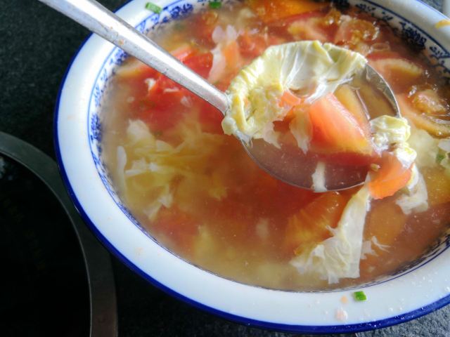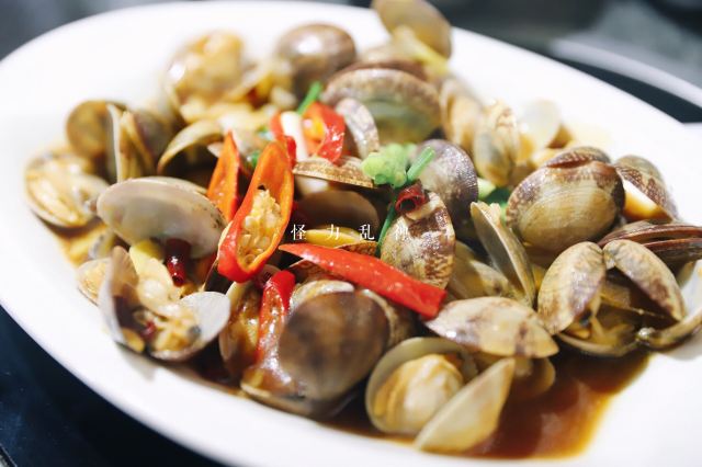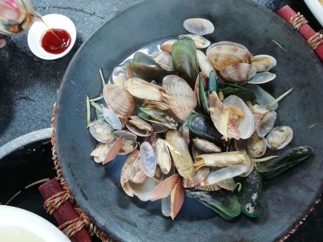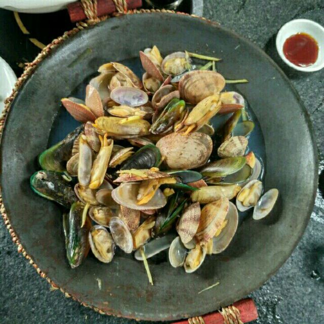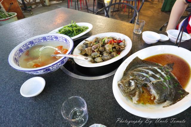 祝名大排档,位于曾厝垵天桥边上,桥边上有一棵大榕树,榕树绑着一些红绸带,底下是一大片的平台,大部分的客人选这里用餐,所以环境超好,还能看远方海景。 它家面积很大,除了平台外,还有一大间楼上楼下的小木屋,如果下雨天就可以躲在小木屋用餐。 蒸海子鱼, 鱼很新鲜,上面洒上蒸鱼豉油,更加增添了鱼肉的咸鲜味,鱼肉扎实,这就是海味~ 西红柿 蛋汤,西红柿 又是蔬菜又是水果,营养丰富,汤很舒服,暖暖的来一碗,质朴中也很解腻~ 炒青菜,中规中矩,无功无过,喜欢其中的蒜香,现在吃饭不来个青菜都要不习惯了~ 炝杂贝,第一次吃哦~给自己的一次尝试。有大惊喜,里面放了很多不同种类的贝类,用花蛤,文蛤,淡菜,蛏子,海鲜保质保量,绝对新鲜,而且没有吃到沙子,直接清蒸,吃的全是原滋原味。