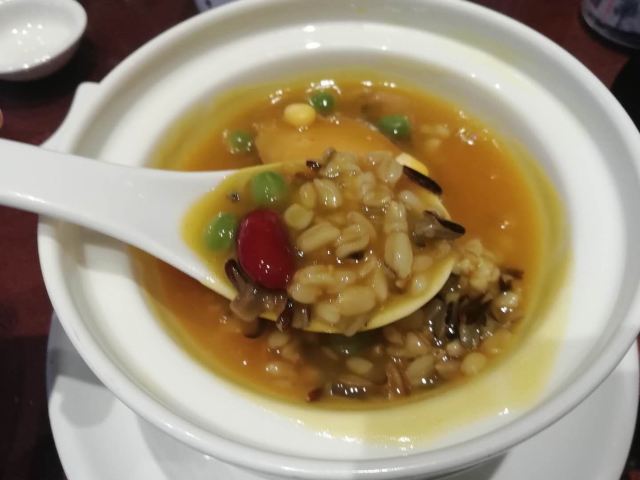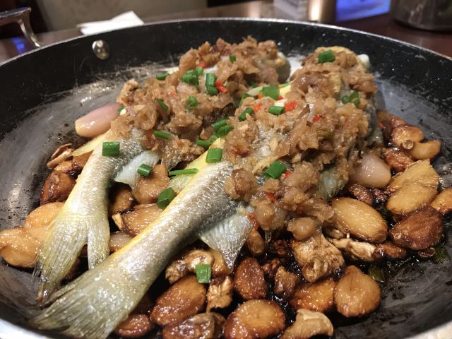 我是小坦克哦鼎宴南山店,在湖里区禹州新村站,据说这家是老店,还来了一家新店在仙岳路上。之前被朋友一阵夸,打算先尝尝老店。 鼎宴分二层楼,一进门是一个很宽敞的大厅,有几分老厦门大酒楼的模样,一种闽南味道。左边是餐台,师傅统一厨师袍带着白色厨师帽,感觉很专业。再往前是海鲜池区和悬挂墙上的蔬菜区,另一侧墙上是菜单,清楚地标明了价格。转角上二楼,大堂里靠窗是大圆桌,中间是四人桌,看着很档次,另外有VIP包间,需要提前订。 粗粮焗鲍鱼,上来的第一道菜,摆盘精致用心,底下是粗粮,上面是一只个头很大的去壳鲍鱼。鲍鱼鲜嫩有嚼劲,很好吃,粗粮的味道也不错,和鲍鱼搭配一点也不违和。 焗海鱼,鱼有两只,我揭开盖子溢出的满满蒜香,蒜蓉很好的去腥,煮熟的蒜更增加了几分甜味,鱼很新鲜,内脏去得很干净,蒜放了不少,一点也不会偷工减料。 旺螺鲜肉汤,汤很甘甜清冽,旺螺处理得很干净,最主要的是食材要好,之前吃过自助餐的旺螺,不新鲜的其实会产生粘液,它家的还不错,瘦肉不会太柴,已经捣成了肉末。