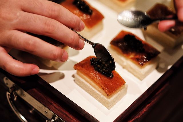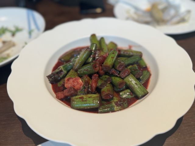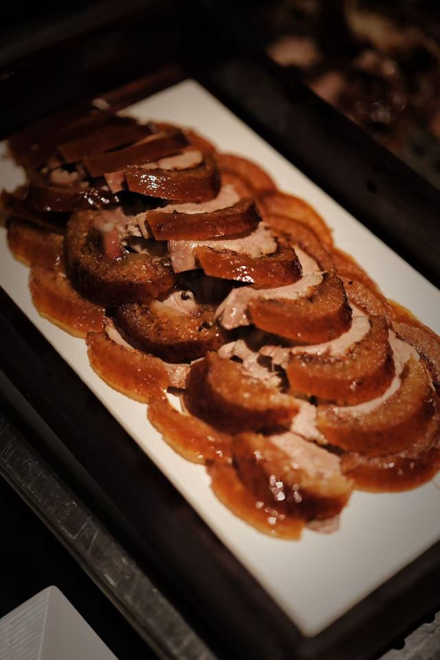 老北京挂炉烤鸭,黑松露藤椒蒸龙胆斑,金汤自制黑豆腐,油醋有机小瓜丝,鲜花椒泡菜龙胆斑,香焗东山灯捕小管,山泉水石橄榄炖肉汁,黑叉烧菠菜饭
