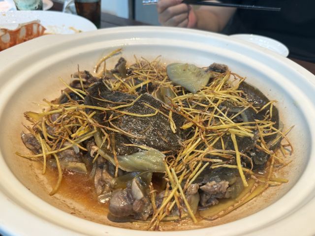 YoYo_2K3Y9D9O作为一个甲鱼的爱好者,看到这次上饍上新了这道菜品,立马约了朋友一起来吃饭。 姜母黄金大甲鱼:这个味道有点类似姜母鸭的口味,我个人非常喜欢,店员介绍说不加一滴说,加了老酒一起文火慢煮而成。难怪这么香,特别是裙边唇齿留香,我一个人吃了一大半。 鲜笋绘红花蟹:用虾汤一起做的,里面搭配了蟹肉还有笋,非常的鲜甜,我配了一碗米饭,这道菜品可以说是懒人的福音。 酒糟炒泽泻:味道很特别,第一次吃这个味道的。 店里的环境没得说,随便拍都很出片,店里到处插🉐都是鲜花,让人赏心悦目。 这次给我们服务的是一个个帅气的小哥哥,颜值超级高,小姐姐个个穿着旗袍,看起来非常漂亮。