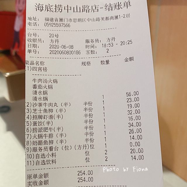 -白格详细地址:中山路219~225号美都商厦2层 实用tips:火锅吃什么?选哪一家?这成了很多吃货的困扰,那么我今天拔草的这家位于中山路的海底捞,是一家生意特别火的店,晚上六点过去排号等到八点钟,所以就去吃点别的东西,顺便看了一场电影。 玩法推荐:记着排队的号码要留着,因为你有号码牌,虽然是过了,但是工作人员还是会优先给你先进去用餐的。 特色推荐: 那么他们家吃什么呢?这么吃才划算?他们家的菜整体来说也不便宜,点单的时候要注意看清楚了,他们菜单上是一份的价格,旁边是可以点半份的,那么价格就是对半,这样一看是不是感觉优惠了许多?当然了,看人数,因为我是两个人,所以一桌吃下来四百块钱也算是不错的。他们家的特色是图一的「欧洲肥牛」、图二「捞派嫩羊肉」还有虾滑、鸭肠等,可惜图片没有拍, 交通攻略:公交车 1路、21路、22路、45路、48路都可以到,站点为中山路站。 ⏰营业时间:每天的早上9:00-次日7点钟 人均消费:200RMB大学生可凭学生证有折扣