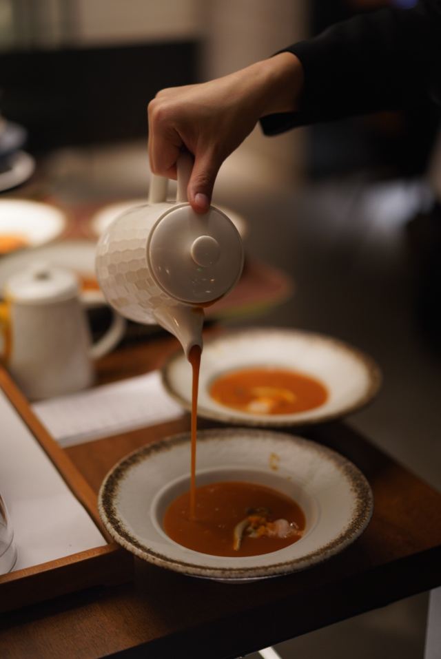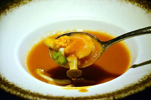 潼甄喵【果木烤黄花鱼】荔枝木熏烤出来的黄花鱼不仅最大程度上保留了鱼的鲜味,恰到好处的火候还让果木特有的香味融入了黄花鱼里。黄花鱼外皮焦香酥脆,但里面的肉质细腻鲜嫩。想要吃这道鱼的小伙伴们一定要提前预定喔。 【香草慢烤草原羊胺】 选自内蒙古大草原纯天然的草场放牧的羊。去除油脂的羊胺经过8小时的慢工腌制后在放满果木条的窑炉里慢慢烤制。草原羊特有的奶香味在高温的熏烤下逐渐散发开来,肉质紧密无膻味,口感嫩滑,肥瘦得宜。香草慢烤草原羊胺,一根在手,“天下我有”~ 【肩胛牛扒】肩胛牛扒选用进口加拿大的15-18个月大的安格斯谷饲牛。厚实的安格斯谷饲牛肉经过排酸腌制再用荔枝木明火烤制,全面锁住了水份。当一刀切入牛肉的时候,鲜艳的血水随之流出。一入口满嘴的细腻、丰腴多汁、入口即化,甚至还带有淡淡的果香味和烟熏味。 【鲜鹅肝安格斯牛柳】钟意独创的招牌菜,鲜嫩柔软的鹅肝与柔嫩细腻的牛柳经过标准温度烹饪,二者完美的结河让味蕾发生奇妙的碰撞。 【海胆鲜虾汤】一锅以海为题的汤,盛放着海胆、虾仁、菌菇等食材,将汤壶里滚烫的浓汤倒入其中。看似浓稠却不觉得腻味 【芝士培根菠菜薯泥】刚看到这道菜的时候心想着绿油油的糊状是黑暗料理吧...原来这道菜是在传统的土豆泥基础上加入了菠菜汁、培根和芝士。绵密的菠菜土豆泥上覆盖着一层厚厚的芝士。一勺下去,满满拉丝~喜欢芝士土豆泥一定不容错过这道菜~ 【榴莲金黄多士】这外形像是油炸豆腐块的小食竟然是榴莲金黄多士。金枕榴莲鲜果肉挖出来做成的果酱,炸成金黄酥脆的样子,味香醇厚,令人回味无穷。 【野菌海鲜饭】意大利米、青口贝、鱿鱼、姬松茸、鲜冬菇、蟹味菇、鲜蘑菇、牛肝菌等多种材料改良而成意式风味的海鲜烩饭