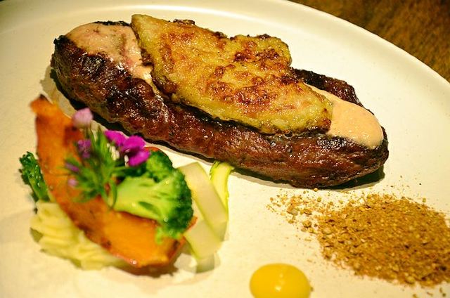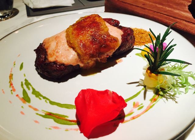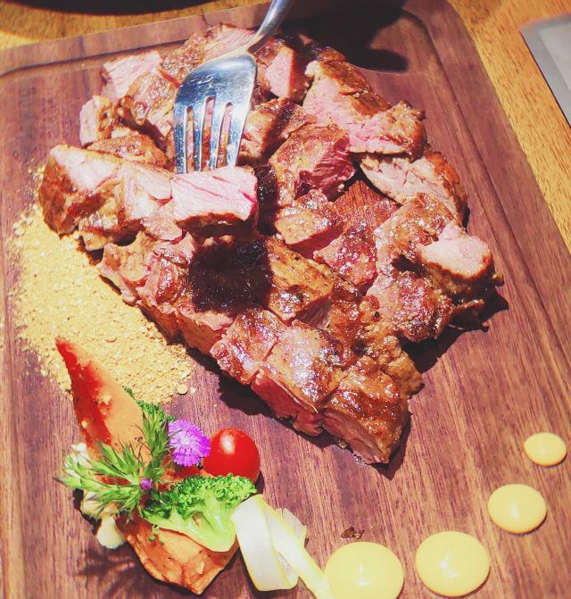 锐天气厦门适合浪漫约会的餐厅,有情调又好吃 西餐厅因为环境氛围好,常常是约会的首选。位于厦门国贸中心美岁城的钟意牛扒,就是这样一家餐厅。开放式的厨房,宽阔的空间,亲切的服务,给人的第一印象是好的。神秘的暗色调,个性的工业风,总体给人安静沉稳的感觉,而淡雅的鲜花,精致的饰品,柔和的灯光,又带来活力与温馨。 正好旁边餐桌已被预定,好像是周年纪念日,店家还用玫瑰花瓣做了装饰,好贴心啊。 香芒海鲜沙拉 将芒果、虾仁与野米,创意的融合一起,吃之前服务员现场拌入芒果酱、红枣酸奶,清甜中带着淡淡的奶香,特别的是形状长长的野米,按服务小妹的话来说:“软糯Q弹”,倒也是形容得非常恰当呀。 海胆鲜虾汤 汤碗里摆好了海胆、虾仁、菌菇等,上桌后才把浓浓的南瓜汤加入,稍稍搅拌一下,海胆融入汤中,喝一口,怎一个“鲜”字了得。 果木烤黄花鱼 黄花鱼肉如蒜瓣,脆嫩肥美,通常用来清蒸、红烧等,原来果木烘烤也不错,外皮焦脆,内里干香,夹带着香茅的清香入口,相当赞。 香草慢烤草原羊胺 来自内蒙大草原的羊胺,据说是羊肋骨第13根下缘的肉,质地柔嫩,带着羊肉独特的肉香,吃起来很带感。另外 ,服务员会帮忙切成小块,方便食用。 肩胛牛扒 足有一斤的肩胛牛扒,端上来时,满眼的肉肉,颇为惊艳。牛肉内含油花,切开后,内里呈现粉嫩的颜色,十分诱人,叉起一块,蘸点黄芥末或孜然粉,这才像在吃肉嘛! 榴莲金黄多士 单从外表看,很容易以为这是一盘炸豆腐,但凑近一闻,就能闻到浓郁的榴莲香,蘸着蛋液煎过的面包片,夹着满满的榴莲肉,再蘸点炼乳,又香又甜,这一餐完美啦!