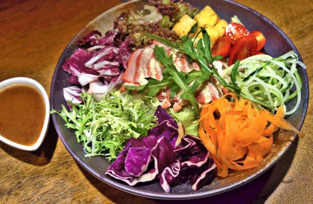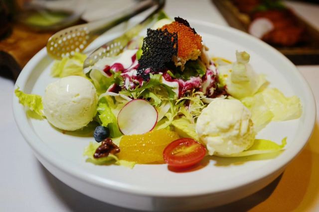 向阳sun钟意牛排,一个很好听的名字。 在厦门有两家店已经开三年多了,国贸中心店位于湖里银泰百货三楼,看到好评如潮,就选择了来他们家。 [环境]餐厅装饰大气且有情调,整体是工业风格的设计,公开透明的厨房,大堂宽敞明亮。 每桌之间间隔很大,保护客户间的隐私,桌上都有鲜花和红酒,精致又浪漫。 除了环境给人赏心悦目以外,最重要的当然还是菜品啦。 西餐讲究的是仪式感,红酒也是必不可少了。 「智力赤霞珠红葡萄酒」 该酒外观呈明亮生动的红宝石色,森林浆果和香料的精致香气弥漫在皮革和甘草的丰厚香气之上。 「烟熏鸭胸沙律」 淡淡的烟熏肉味,搭配新鲜爽口的蔬菜和水果,淋上油醋汁,味道挺不错的且开胃。 「风味鸡翅」 店铺的招牌菜色之一,看似普通的一道菜,但厨师将它做得外皮酥脆,里面娇嫩多汁,味道让人赞不绝口。 「泰汁黑虎虾」 非常泰味的一道菜,新鲜的黑虎虾,肉质Q弹,独特的香料味,再挤一点柠檬汁,很是不错。 「海胆鲜虾汤」 搭配有海胆、鲜虾和菌菇等,倒入浓浓的南瓜热汤,搅拌一下将材料的精华融入其中,味道鲜美至极。 「肩胛牛扒」 厦门牛排第一名,点的是七成熟,火候把握的刚刚好,肉质嫩滑细腻且富有弹性,足够厚实的一大份牛排,满足了大口吃肉的快感,嚼劲十足, 「香草慢烤草原羊胺」 七成熟的羊排肉质柔软,不带一丝膻味,细细品味,羊肉的甘甜还带着些许肉汁,非常的嫩。 「果木炭烤黄花鱼」 大黄花鱼烤的火候刚刚好,色泽金黄,鱼皮酥脆,鱼肉鲜嫩。 「榴莲黄金芝多士」 对于钟爱榴莲和芝多士的人来说,简直是最佳的甜品了。金灿灿的芝多士,口感松软,蘸上炼乳,回味无穷。