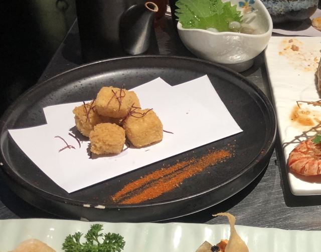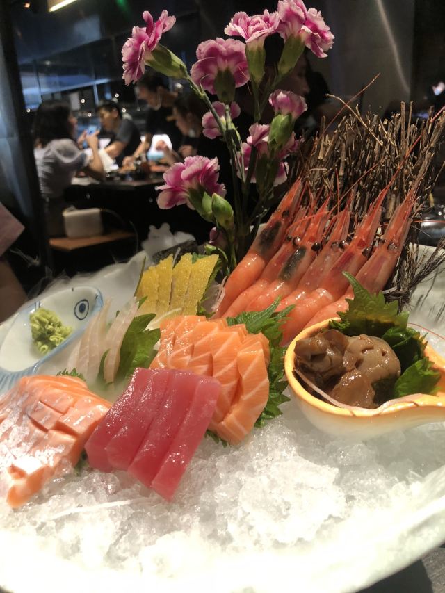 许fan【地址】就在sm一期5楼,海底捞旁边。 【环境】利用透明的材质做隔板,即显得空间大,而且隔板上还有一写字句,挺特别的。 【芥末章鱼】章鱼切成段,有点微呛,但个人挺喜欢的。 【蟹籽沙拉】这款吃起来挺清爽,特别是里面加了苹果,跟蟹柳混合在一起吃,苹果脆脆的口感和清香很适合夏天吃。 【刺身】吃日料必点,点的三文鱼,甜虾,金枪鱼,希鲮鱼等拼盘,甜虾还带着蓝色的卵,食材都特别新鲜,最喜欢三文鱼和甜虾,沾点芥末和酱油等,很鲜甜。 【牛小排】还是比较嫩的,牛肉带微红。 【炭烤鳗鱼】这个也是我吃日料必点的,最喜欢烤鳗鱼,不管是鳗鱼饭还是单吃,一口咬下去都感觉很满足。 【法式鹅肝】就是红酒鹅肝,冰镇的,还可以。 【鲍菇扣鹅掌】这个很好吃,鹅掌炖得挺软烂的,而且也够入味。 【烤黑猪肉】这个是直接整个烤盘都端上来,猪肉变色就可以吃了,别烤太久,要不肉会太干不好吃。 【香煎厚切牛舌】这个吃起来还有点脆脆的,可以沾点她们配的黑胡椒酱,还不错。 【鳕鱼】鳕鱼还是挺新鲜的。肉质还是比较鲜嫩。 【甜品】烤榴莲对于榴莲爱好者来说,也是必点的,不过他家的榴莲味没那么浓,但味道还不错。香草冰淇淋挺好吃的,桃花胶,对女生挺好的,吃一点美容养颜。 【土瓶蒸】吃生冷的,搭配点这个喝,挺不错的,不过感觉味道偏咸了点。 【青瓜汁】这个挺清爽的,夏天喝冰冰凉凉,挺不错的。