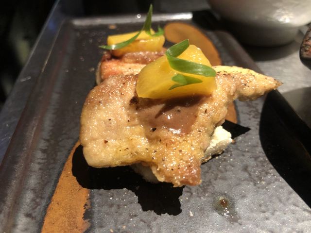 江左尚白|日式放题料理 放题在日语里的意思就是无限吃,也就是表示 自助餐。日本料理这种精致的菜系还能做自助餐的形式,让人无限的满足。 江左尚白位于嘉禾路468号SM城市广场1期5层,海底捞隔壁。一楼有观光梯能直通,所以很方便。环境从装饰到桌椅很精致,为顾客提供了一片舒服的空间。 「法式鹅肝」鹅肝煎得很香,一口下去满是脂肪,最上面的芒果很解腻。 「蜜月生蚝」生吃的生蚝,不新鲜可不行。吃下去一点都感觉不到腻,而且很清爽。 「南瓜蛋挞」很日式的甜品,南瓜的甜是清甜,搭配蛋挞非常合适。 点菜顺畅,上菜快,撤盘也快。服务总体满意,让人很舒服。