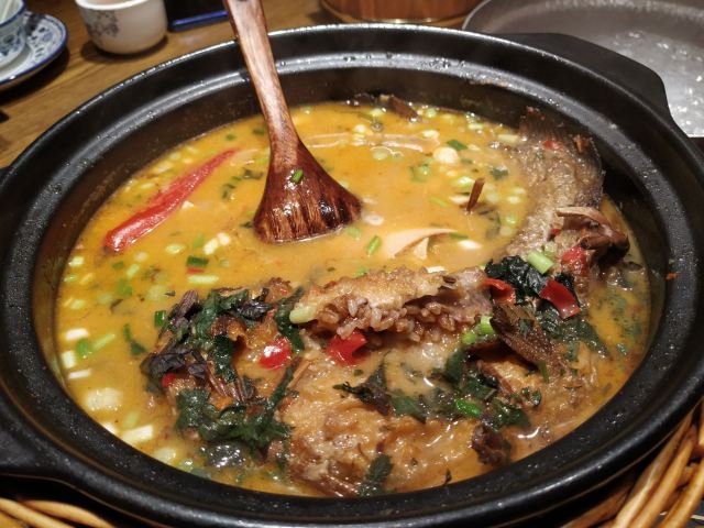 在厦门也能吃到正宗土家民族菜,美味地道,你吃过吗? 土家族有着独特的风俗文化和特色美食,厦门有家名叫吃饭皇帝大的餐厅,主打正宗地道湘西土家民族菜,位于湾悦城3楼。 门面很吸引人,让人迫不及待想进去一探究竟。进门就是大大的LOGO,白虎是土家族的祖神,很有内涵。 餐厅面积挺大,设计的很不错,布局合理,移步换景,有方桌有包厢,用餐环境舒适。墙上土家当地的照片、面具、纹饰等装饰,民族风情十足,让人仿佛来到了土家村落中。 服务周到,很快就开始上菜啦! 柴火稻草鱼,这是土家特色美食,选用当地特产江团鱼,用独特的调料烹制,锅底还有稻草,吃起来鱼肉细嫩鲜美,汤汁鲜香醇厚,配菜入味可口,还带着稻草淡淡的清香,吃鱼喝汤,不亦说乎。 猫儿山的小黄牛,先将空锅加热,然后端上生的牛肉、酸菜、芹菜,当场爆炒,顿时香气四溢,炒熟后立马开吃,热腾腾香喷喷,牛肉娇嫩可人,好吃的停不下来。 剁椒水库鱼头,硕大的鱼头,一看就让人食指大动,鱼头中有丰富的软组织,烹制入味,口感味道俱佳,一会就被瓜分一空。 农家鸭滚蛋,鸭蛋连壳烹制,十分有趣,鸭肉饱满扎实,香浓够味,鸭蛋个头硕大,蛋香浓郁,爱不释手。 灶膛罐罐牛腩,服务员端上一个造型奇特的罐罐,然后点火燃烧,火焰熄灭后,敲开罐罐,原来里面是热腾腾的牛腩,肉质嫩而有嚼劲,汤汁浓郁香醇,吃肉喝汤,美味滋补。 土萝卜干炒腊肉,色泽油润清亮,腊肉咸香够味,萝卜干爽脆可口,配饭配酒都很棒。 香干炒猪耳,猪肉嫩脆弹牙,香干豆香浓郁,虽然家常,但是很让人赞赏的一道菜。 倒缸冲菜,自家腌制的泡菜,清脆爽口,酸辣开胃。 擂辣椒炒手撕鸡,鸡肉炒的火候恰到好处,香而不柴,辣度也刚刚好,香辣而不过度刺激,赞不绝口。 甜豆荚炒香肠,色彩很漂亮,豆荚清脆清甜,香肠香浓油润,有滋有味。 肉末炒甜豆,甜豆口感弹中带肉,自身的清香加上肉末的肉香,锦上添花。 土家手掰柴火豆腐,柴火的豆腐有种特别的香味,清香而不清淡的一道汤,热乎乎喝上一碗,无比舒畅。 糯米鸡翅,鸡翅用糯米包裹烹制,汁液不流失,充分保持了食材的原汁原味,口感娇嫩,汁液丰富,还带着糯米和玉米的清香,画龙点睛。 儿时的双味发糕,口感蓬松,自然的香甜,吃上一口,仿佛回到了儿时快乐的时光。 长沙炒饭,米饭颗粒分明,大颗饱满,炒的均匀入味。 老家桂花红糖凉粉,加入了多种配料,清新甜美,去油解腻。