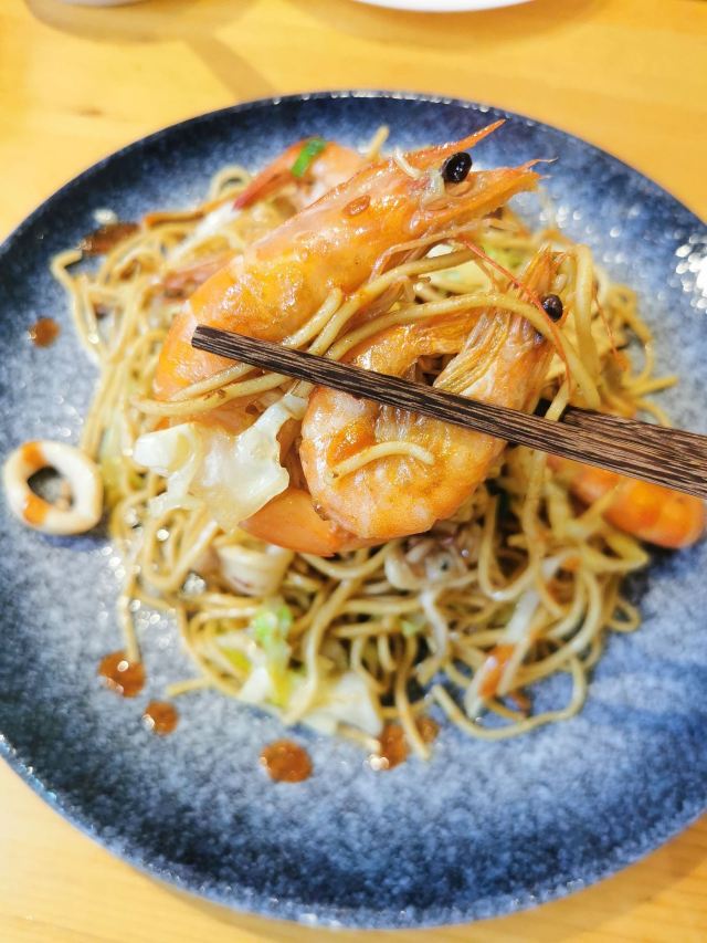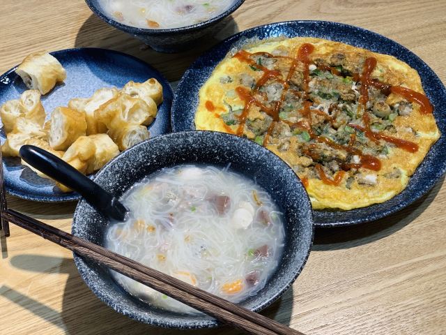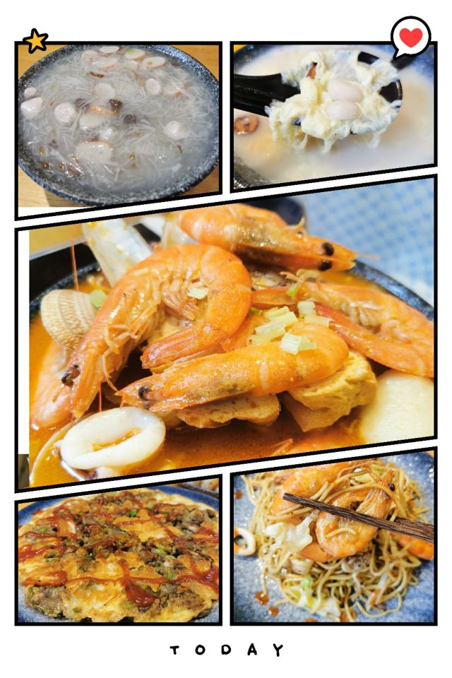 姚啊姚外婆桥环境:清清爽爽的一个小店,干净卫生整洁,开放式的厨房一目了然看着就干净。 |特色海鲜沙茶面^特色招牌面条,大虾~鱿鱼~蛏子~花蛤~鱼丸~豆干等,只见海鲜不见面的沙茶面,看见2位男士吃光光想必味道错不了。 |面线糊^|油条^搭配一起吃的2道菜品,一口面线糊一口油条,味道不错喲~ |手工熬制花生汤^一份甜汤里面还有鸡蛋花哦!喜欢甜食的朋友不要错过。 |海鲜炒面^味道棒棒哒我喜欢😍,里面的虾特别的鲜~香~甜,面条劲道有劲,关键是量太足了,愣是没有吃完~ |海蛎煎^凹了造型的海蛎煎,好是第一次吃加了番茄酱的海蛎煎,味道还不错喲! 服务: 服务棒棒哒!里面都是一群帅哥靓女,食物都是出自他们的手,觉得有点不可思议哦!