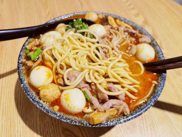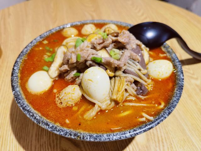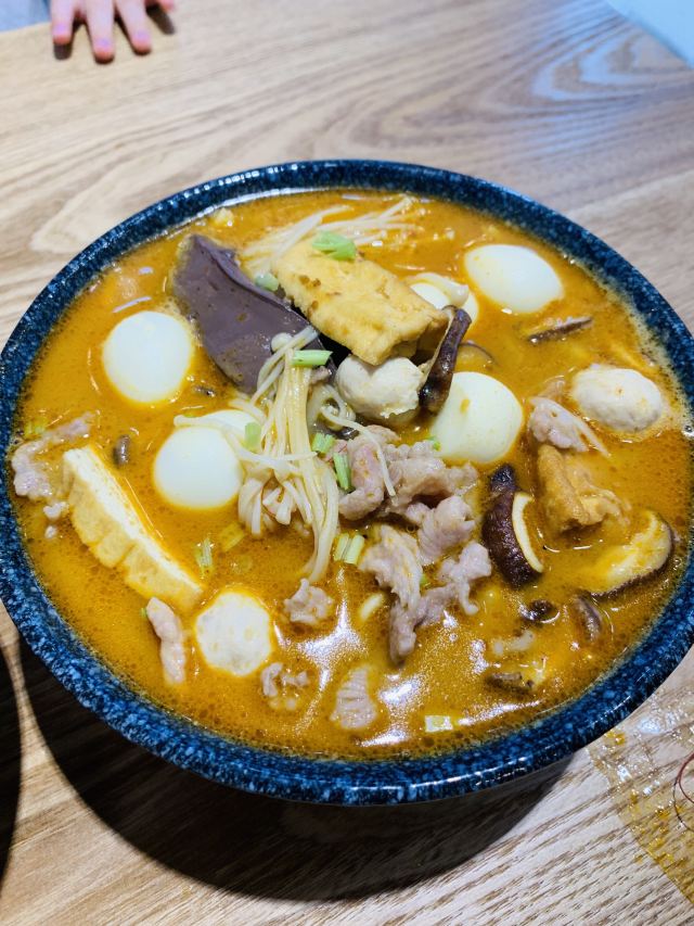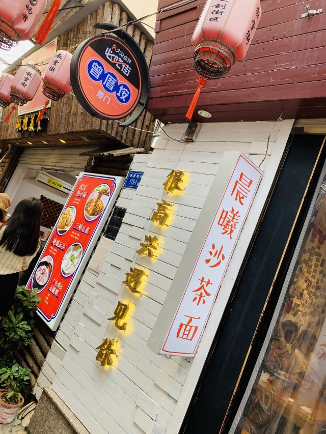 chenxi在厦门还是最爱沙茶面,曾厝垵里的晨曦沙茶面,生意也是很好的哦,按导航拐着几个弯就到了! 店里几个小哥哥很客气,很有亲切感,会和客人聊天,询问口味好不好,有求也必赢应,服务热情贴心呀! 沙茶面有几种口味选择,要了古早沙茶面,里面就是有瘦肉肉丸鹌鹑蛋香菇鸭血金针菇卤豆腐,配料非常足,看着就超诱人的,汤底浓郁鲜美,好吃好好吃! 小店也有其他厦门特色美食,也是不错的选择!