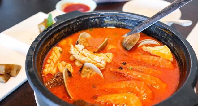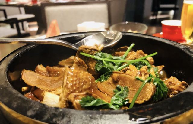 海鲜沙茶锅,闽南秘制姜母鸭,生拆蟹肉海鲜皇坛子,薄荷三杯鸡,沸腾鱼,星洲炒厦门面线,松茸菇清炖原味土猪汤,耗油广式芥兰,果盘,靓汤,闽南小食拼盘