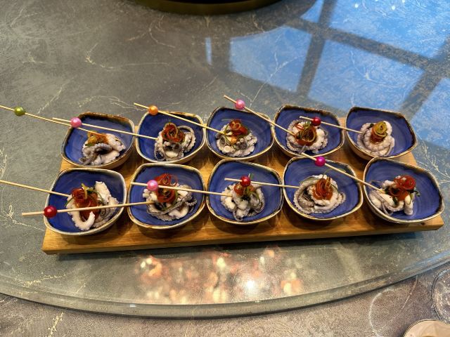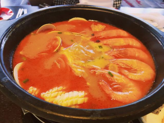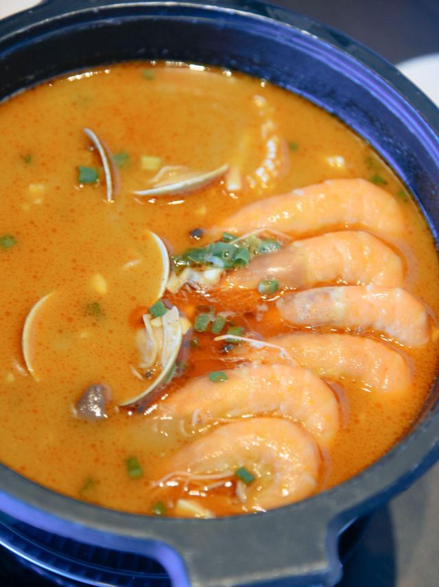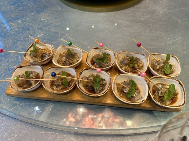 young_hz【口味】⭐️石锅开边虾,特别推荐,开盖香气浓郁,可惜的是回来在家复刻都复刻不了,真的很赞,还想再去吃。 ⭐ 顺德煎鱼嘴,之前去顺德吃过一次,正好这里酒店有,味道特别像,很正。 ⭐️面酱黄瓜卷,很特别的一个凉菜,对于我一个不爱生吃黄瓜的人来说,简直就是来一场味蕾的享受,沾那个面酱简直不要太爱了 【环境】大海环绕,吃饭伴随海浪声,蓝天白云是个度假胜地,里面的装横摆设也特别有创意,桌面还有个小娃娃很有意思 【服务】服务员态度不错,跟餐厅工作人员闲聊介绍了他们这边的茶水还是有季节限定的,现在春季会熬制洛神花茶,夏季上火还会熬制罗汉果菊花茶,人性化酒店,真的值得推荐!