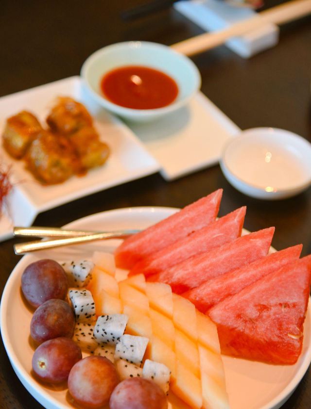 鸭鸭爱生活面朝大海,春暖花开,好的环境是用餐舒适的前提。位于佰翔五通酒店三楼的瀚澜阁中餐厅,布袋木偶的闽南元素加上开阔的无敌海景,一进入餐厅就让人觉得心旷神怡。   这里主打的就是闽南风格的中餐,点套餐的话尤其划算,3-4人吃饱饱也就260元,还享受五星的服务,不需要加服务费。   季节水果盘,当季的普通、火龙果、西瓜作为开胃前菜,缓解酷热带来的焦躁感。餐前小菜是石码五香卷拼崇武鱼卷,特别喜欢鱼卷,入口便是大海的气息,映着外面的海景,格外的有感觉。   松茸清炖原味土猪肉汤,鲜美无比,而且加入了松茸更加养生。   闽南沙茶海鲜锅,作为厦门代表的沙茶汤,加入了海味的大虾,沙茶汤底熬得很不错,味道纯正浓郁,一锅沙茶汤很快就被分食完。   闽南秘制姜母鸭,也是厦门特色菜,这边做的姜味没那么浓,比较温和一些,鸭肉炖的比较烂,老少皆宜。   蚝油广式芥兰,很难得有一道青菜能让我这种肉食动物都爱上了。   星洲炒厦门面线,配料丰盛,有虾仁、鱿鱼等,作为主食再好不过了。   人少的话也可以单点,现煮的面档颇为推荐。   五星水准的体验,看无敌海景,平民的价格,纯正的闽南味,这个瀚澜阁中餐厅令人很惊喜。