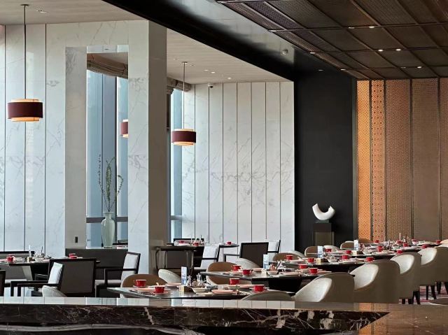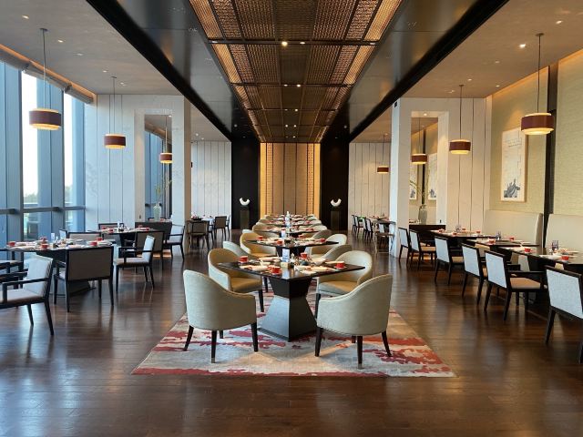 瀚澜阁中餐厅由大厅和14间包房组成,整个空间犹如中国水墨画,祥和、儒雅、大度,更有观海阳台让您伴着云蒸霞蔚品一壶香茗。星级大厨匠心烹制地道闽粤佳肴、创意中餐料理及闽南当地特色风味。沿袭数百年历史并加以改良创新的“皇坛子”系列,内有层次分明、淳滑味厚的至臻鲜味为原料,暖胃暖心,回味无穷。更有汇集新奇食材于一身的创意餐后甜品,在液氮的烟雾缭绕中享受花生岩巧克力与朗姆酒冰淇淋的味蕾碰撞。