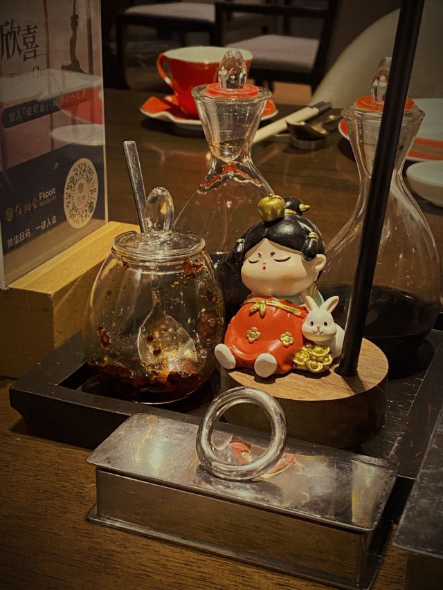 Hanlangezhong Restaurant (xiamenbaixiangwutongjiu)【口味】⭐️石锅开边虾,特别推荐,开盖香气浓郁,可惜的是回来在家复刻都复刻不了,真的很赞,还想再去吃。 ⭐ 顺德煎鱼嘴,之前去顺德吃过一次,正好这里酒店有,味道特别像,很正。 ⭐️面酱黄瓜卷,很特别的一个凉菜,对于我一个不爱生吃黄瓜的人来说,简直就是来一场味蕾的享受,沾那个面酱简直不要太爱了 【环境】大海环绕,吃饭伴随海浪声,蓝天白云是个度假胜地,里面的装横摆设也特别有创意,桌面还有个小娃娃很有意思 【服务】服务员态度不错,跟餐厅工作人员闲聊介绍了他们这边的茶水还是有季节限定的,现在春季会熬制洛神花茶,夏季上火还会熬制罗汉果菊花茶,人性化酒店,真的值得推荐!