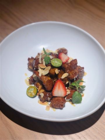 残色娃娃_风禅意别墅里品不一样的闽味体验。 上次吃半未时宜的时候,觉得不错但略显普通,时隔三个月再来,却是颠覆性的改观。 坐落于莲花凌香里的庭院小楼,外浅白调,里胡桃木色,淡雅清幽,颇有禅意。 以闽菜为基础,创意配味,品尝之间时不时遇见惊喜。 一道半未香酥马蹄烙,酥软甜脆,沾的百香果酱却是轻酸甜润。 春笋雪耳炖鸡汤,当季的春笋鲜嫩无比,银耳润燥,清口甘甜。 九层塔三杯焗大虾,台系经典做法,酱香鲜甜,九层塔的特殊香气似乎跟任何食材都能完美结合。 台式暖宫烧酒戴云乌鸡,标推荐,台湾米酒与麻油一同烹制的浓郁回味,再加入文蛤提鲜,不仅好味还滋补,闺蜜聚餐必点。 黑松露蘑菇汁南日鲍,整颗饱满弹嫩的鲍鱼伴着鲜浓的蘑菇汁,黑松露的霸道香气中透出海的味道。 夏威夷果清新芥末虾球,芥末味的出挑配上虾仁的温润Q弹;煎炒加拿大小牛肉,蒜香微甜牛肉软嫩,两道菜都令人赞不绝口。 除此之外,饮料和甜品也是颜值担当的实力派,带着乳酸菌的清透爽口搭配细腻的水果挞,就是一份精致下午茶。 at 半未时宜,凌香里16号别墅