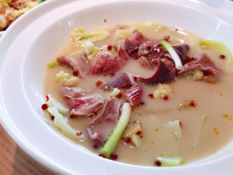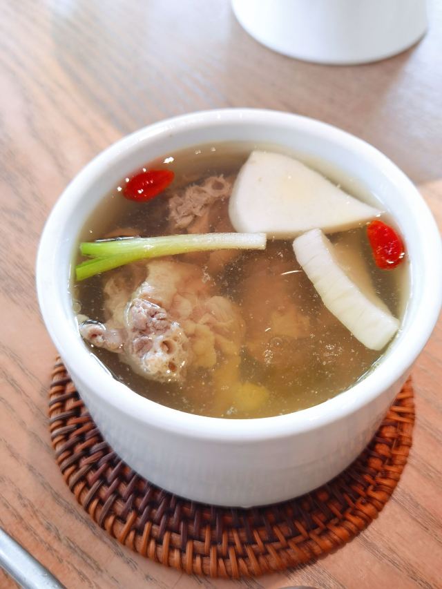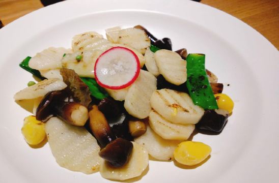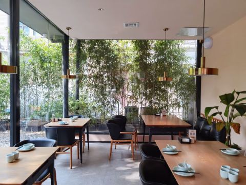 酒店CI之后 随便搜了一下附近的餐厅 看着小庭院里绿植繁茂 颜值相当不错 而且离酒店又近就这家了 说近那还是真的近 在房间里就能看到 大概出门走个几分钟也就到了 应该算是午餐后半段了 食客不算多 有些菜已经没有了 餐厅是真的好看 玻璃房子 绿植环绕 就是喝个下午茶也是很好的选择 里面很素 干净整洁 就很舒服 包括上菜 清一色的白瓷 看着就很搭 口味上也很地道 总体感觉不错的