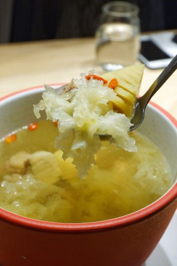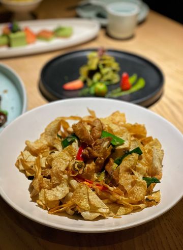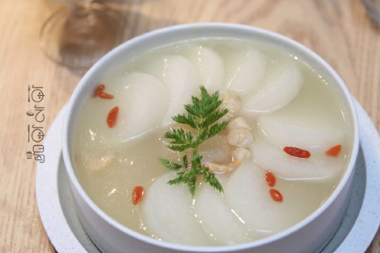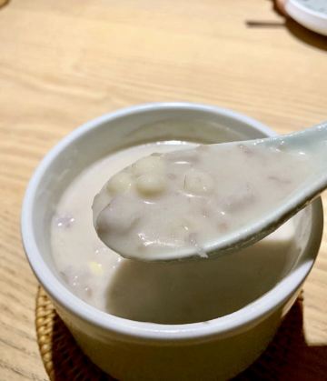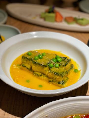 Mx曼恋儿与好友相聚半未时宜 位于凌香里16号别墅,莲花中学附近 环境是独栋的别墅,最里面是大片的落地窗,简约大气;整体空间给人一种清净雅致,安闲自得的感觉 「台海伍鱼石花冻」将鱼嵌在石花冻里,鱼肉新鲜嫩滑,吃得时候连冻一起,口感清新冰凉,蘸上酱汁,勾起了舌尖上的美味 「奶油焗蟹膏」蟹壳金黄明亮,蟹膏饱满丰富,食材新鲜 「椰香芋泥煨苏芡」浓郁的椰香味,加了苏芡养生健康,个人很喜爱的甜汤 「茶油桃露海胆蒸蛋羹」蒸蛋嫩滑无比,加了桃露,蛮有特色的 「浓汤苏芡烩鲜菱角」这道菜喜欢它的汤汁,鲜甜浓郁,带动了整体的口味 「樱花海盐苏打」少女般的粉色,喝起来咸甜交错,冰爽解渴,绝对是俘虏味蕾的气泡水 「椰子慕斯」浓浓椰香搭配入口即化的慕斯,外层的巧克力脆香丝滑,挺好吃的 吃完,愉快的结束了一顿美味的晚餐