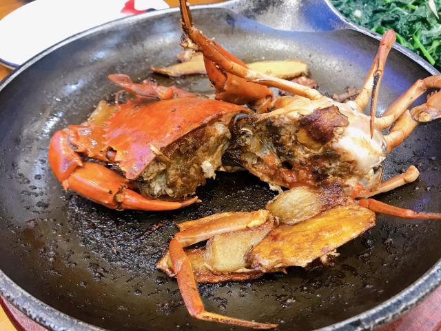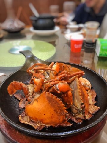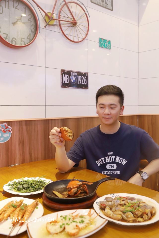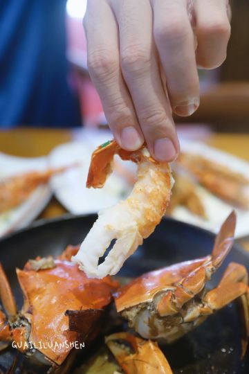 怪力_乱神▪️哈喽大家好,我是怪力。 ▪️在闽南人的饭桌上,海鲜是少不了的。上周末在家煮了一顿海鲜,蒸了个螃蟹,突然特别馋双辉的煎蟹,约上好友又吃了一顿。 . ▪️双辉家的煎蟹真的绝,以前住在集美的时候常常会来吃,现在住在附近更是隔三差五来。这家店经常有来厦拍戏的明星打卡,运气好搞不好就遇到了。 . ▪️煎蟹可能是厦门独有的吃法了,将蟹膏满满的膏蟹放在铁板上煎,在膏蟹油脂的作用下,焦香四溢,就连蟹壳都想拿起来啃。蟹肉紧实新鲜,一人一只是必须的~ . ▪️店里的很多海鲜都新鲜,门口的海鲜池可以任意挑。点了一只小青龙,用蒜蓉粉丝清蒸的做法,经典又好吃。 . ▪️黄金大虾用的虾新鲜又大只,表皮炸的金黄酥脆,里面的虾仁鲜嫩又弹牙,一串一只超过瘾。 . ▪️在闽南海鲜做法中,除了清蒸,酱油水也是一绝。选了一道喜欢的油蛤做酱油水,入味好吃,连壳都吮干净了。