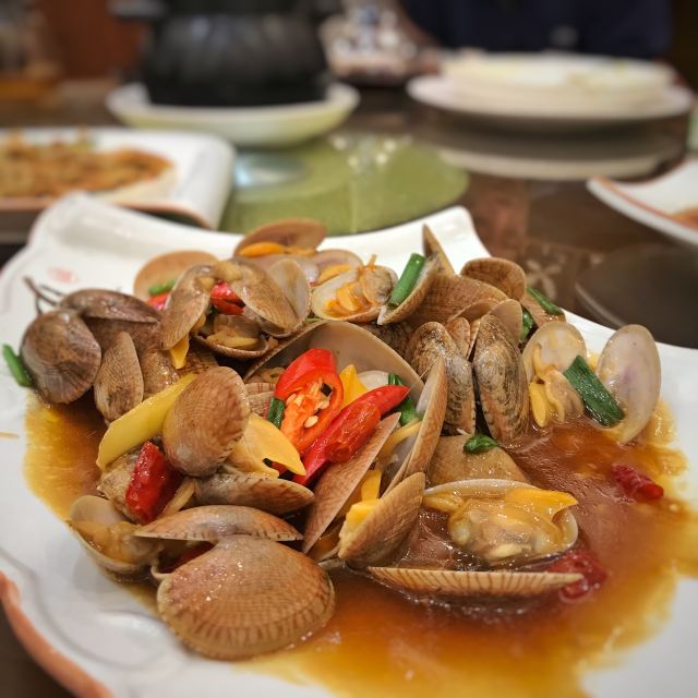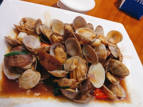 Miss丶Fiona带外地朋友從鼓浪嶼回輪渡,友人說想吃煎蟹、薑母鴨,就近搜索到了來廈門必吃的老字號【雙輝煎蟹海鮮大排檔】,還有做團購。位於水仙路66號(靠近中山路步行街、輪渡海濱大廈)。這條路也真的就是本寶寶小時候的回憶了,每天的上學放學的必經之路。 一進來雙輝,就能看到有海鮮池,菜品都是明碼標價的。一面墻上貼著老廈門的照片,韻味猶存。另一邊墻上貼著老廈門的路牌,有許多小街小巷,大概也就只有老一輩的人才懂得在哪裡,怎麼走了。 「雙輝煎蟹」不愧是招牌煎蟹,開鍋的時候香氣四溢,蟹膏飽滿,蟹肉鮮甜。 「清蒸石斑魚」現撈現殺現蒸的魚,原汁原味,肉質鮮嫩。 「爆炒花蛤」花蛤還算肥美,炒得也挺有味道的。