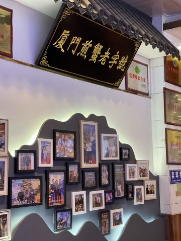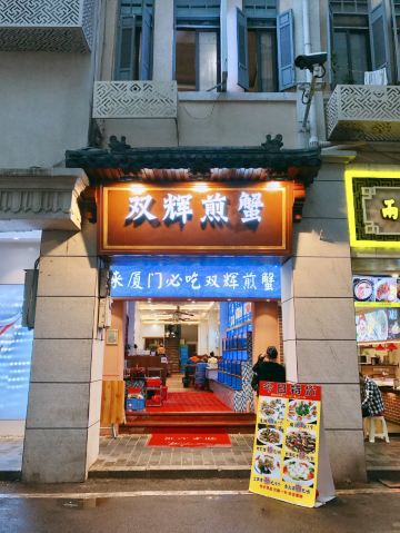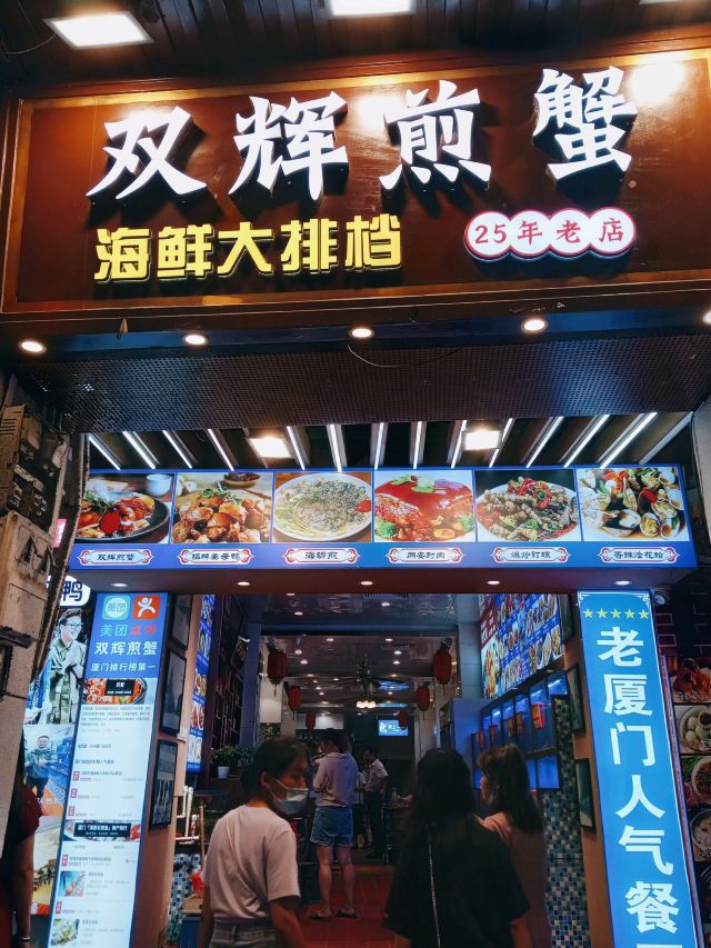 潼甄喵一家在厦门闹市街区开了20多年的海鲜🦞大排档,口碑很不错,常有明星光临。店里墙照就有许多老板与曾志伟等明星的合照和满是厦门🏠骑楼照、大街小巷的地标 。 双辉煎蟹🦀️是店家招牌,用姜丝煎至螃蟹🦀️呈诱人的金黄色,膏黄满满,蟹肉紧实弹牙🦷 厦门面线糊🥣是闽南地区的特色小吃,老少皆宜,无早晚之分。若是有油条拌里面就更好了,满是小时候的味道。我们人多又点了另一道主食炒油面,味香浓郁,面条🍜劲道,没一会就光盘了。 爆炒花蛤油蛤个头饱满,就连竹蛏都非常肥美,鲜甜可口。海瓜子在双辉被烹饪得色香味俱全,就连不怎么吃海瓜子的小伙伴都吃的津津有味。 ———————店铺信息——————— 🏠店名:双辉煎蟹 📍地址:中山路水仙路66号 🕐时间: 10:0-00:30 🚏交通:乘坐公交🚌853、51、11海滨大厦下车后步行24