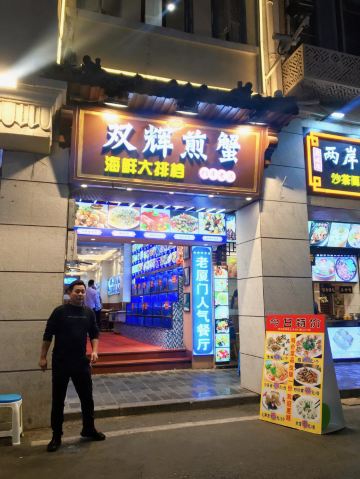 地理位置在水仙路66号(鹭江宾馆东南200黄则和花生汤东30米中山路步行街) 【环境】环境不错哦,听朋友说这几天曾志伟要来,激动坏了,就和朋友过来吃啦[调皮] 【服务】服务很棒,老板很热情。 「双辉煎蟹」煎蟹很鲜,肉质很嫩,老板亲自现场抓活蟹,好大一只哦,喜欢吃蟹的推荐一定要来尝尝味道,好吃实惠,关键还能看到大明星曾志伟!「爆炒花哈」花甲味道很棒,是我喜欢的味道,份量足「空心菜」青菜比较清淡,吃起来脆脆的,反正合我胃口啦,「葱油小管」这个菜就是鱿鱼哦,味道也很鲜,大家来一定要来点这个哦「海鲜卷」海鲜卷很酥脆,里面有虾仁哦,他们家是真心不错,而且实惠! 喜欢吃海鲜的可以去双辉煎蟹试试哦,我对吃的很挑,但这家的确很好吃,很nice[调皮]