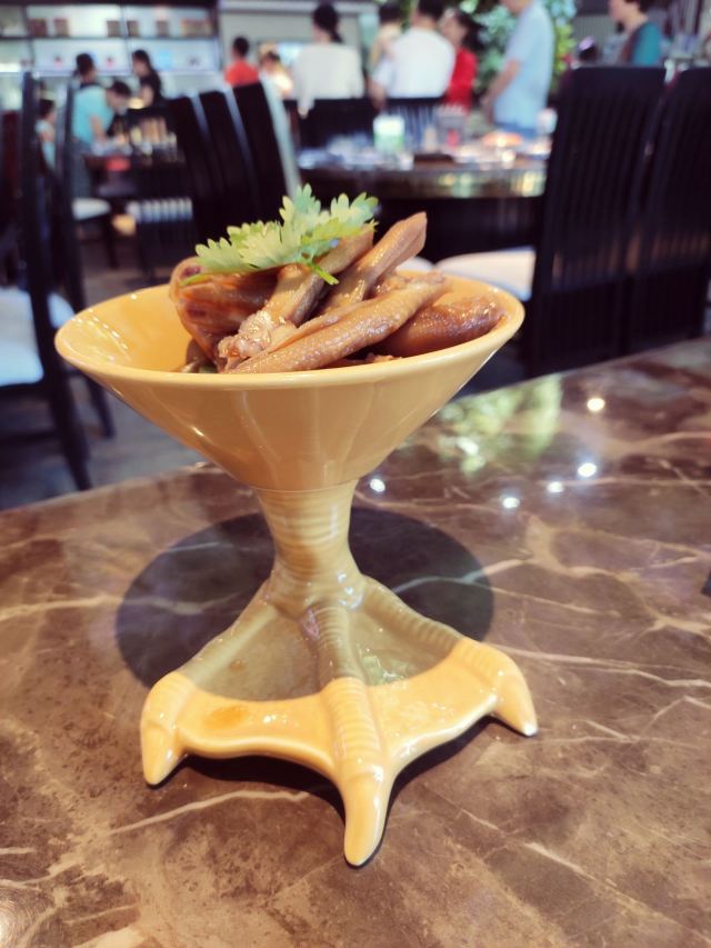 番茄看世界出了停车场上电梯便看到他们家硕大的门面了,提前订的大包厢约莫可以坐下十多人,跟着服务员穿过前厅,包厢竟然在另一栋,真是藏得有够深的。包厢的设计很独特,形如一座圆形土楼,每个包厢门前都有一对石狮子,门匾上写着包厢名,以客家四州主要市镇命名,包厢自转大圆桌、茶几古香古色,墙壁上的装饰水墨字画,极具特色。所有的包厢都面朝海沧湖。   连城白鸭汤 连城白鸭是被认定为全国唯一有药用价值的鸭子,具有滋补安神、清热解暑的作用。以连城白鸭与白鸭蛋加入清补药膳同炖,白鸭蛋吸收汤汁中的油分更加入味,而汤头也更加清爽甘甜。   六和鱼 客家六和鱼是与连城白鸭汤齐名的镇店双宝之一,这样一道五颜六色的六和鱼再烟雾缭绕的干冰效果下出场,立即成为全场的焦点。值得一提的是,装呈鱼头的盘子与托盘竟然是一只全鱼的形象,完美诠释了六和为一的特色。   野山椒玉珠爆牛肉 这道野山椒玉珠爆牛肉,从摆盘到味道都堪称上乘。这种一串串白色的玉珠,俗称白虫草,学名甘露子。甘露子经过腌制,除了本身的甘,甜度已经被酸度吞噬,更加包容于野山椒的辣劲,酸辣的口感和牛肉也很搭调,吃起来别有一番风味。   客家宴席拼盘 客家烹饪最精的莫过于熏卤了,这份卤水拼盘傲寒了四种不同的肉品,从鸭胗到毛肚,从硬到软,吃起来格外带劲。而且腌制入味,整片肉都是卤料的酱香,特别美味,四种颜色依次摆成渐变色,飒是好看。   巧妇酥炸茄盒 炸茄盒用来招待客人再合适不过了,炸至金黄酥香的表皮以及脆嫩的茄肉,小孩子都喜欢的不得了,蘸上美味的甜辣酱,一个接着一个完全停不下来。   山茶油酿冬菇 客家人擅长做酿,冬瓜酿、酿圆子不在话下,但是这道酿冬菇你可曾食过?精选山林冬菇,以农家山茶油做酿,掀盖出锅,香气四溢。冬菇脆嫩如鸡肉,每一口都饱含汤汁,咬一口菌香扑鼻,看似平淡无奇其貌不扬的一道菜竟有如此清新的气息。   簸箕板拼油炸糕 簸箕板是发源于闽西的客家菜之一,经过手艺人的传播已经成为客家菜的代表性美食之一了,簸箕板以米浆为材料,蒸熟,大体与广东肠粉有异曲同工之妙,不过,簸箕板的个头更小质地也更脆,吃的时候需卷上肉丝、韭菜、豆芽、鲜笋、虾米、香菇等馅料,再淋上葱油。吃起来细嫩可口,既可当小吃,也可以当主食,非常方便。而白色的簸箕板与金黄色的油炸糕摆在一起,瞬间高大上许多。