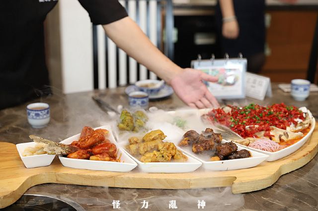 农家土猪肉汤,野山菇豆腐煲,米汤,客家煎酿豆腐,连城白鸭汤,客家粉蒸肉,客家盐卤豆腐,客家芋子板,盐酒河田鸡,六和鱼,米饭,簸箕板拼油炸糕,爆炒九门头,红薯条