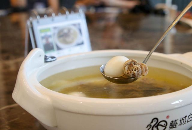 芋圆仙草冻RaitoPhoto连城县不仅是个著名的革命老区和客家文化名城,美食更是数不胜数,用上三天三夜也吃不完。不过这家位于正元新都汇的小鸭鲢城倒是拉近了我们与连城美食的距离啦! 「地瓜干」 每一桌都会赠送一份香甜可口的地瓜干,也算是诚意满满啦! 「脆爽萝卜」 大概是见过的最有仪式感的萝卜干了吧。酸萝卜十分爽脆,泡椒的酸辣感更是刺激的味蕾,在炎炎夏日里让人顿时感觉胃口大开。 「簸箕粄」 最让我期待的就是这一道簸箕粄啦,模样看起来与广式肠粉有几分相似,食材为米浆,四季豆,茄子,最锦上添花的是上面还淋了一遍油锅的葱末,口感爽滑细润,让人印象十分深刻。 「连城白鸭汤」 吃连城菜才怎么可以不喝白鸭汤呢?与平日里自家买的鸭子不一样,连城白鸭不油腻,汤味独特、肉质鲜美、清香四溢,还有清热解毒的功效哦。 小鸭鲢城家的美食还有很多种,每一款看起来都十分诱人,「客家芋子板」、「客家煎酿豆腐」「簸萁板拼油炸糕」等等特色菜看起来也非常诱人,待我重振旗鼓再战连城美食~ 人均:100元