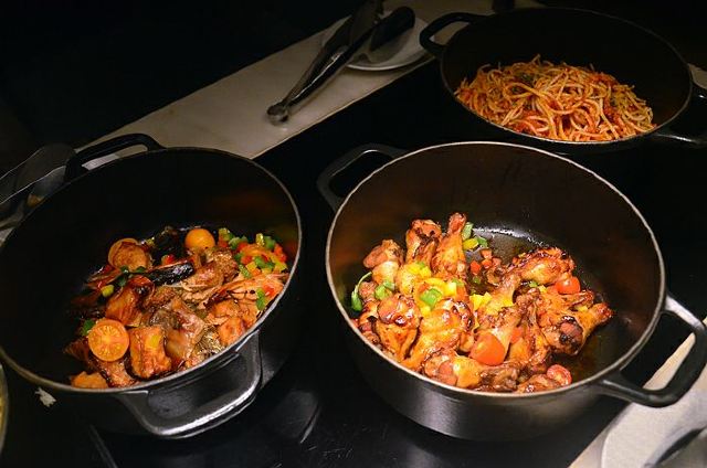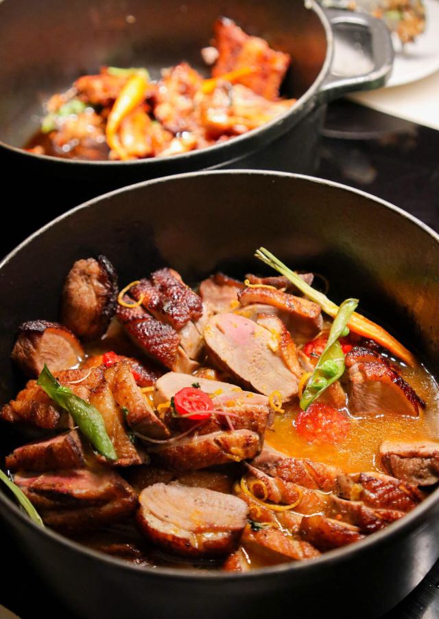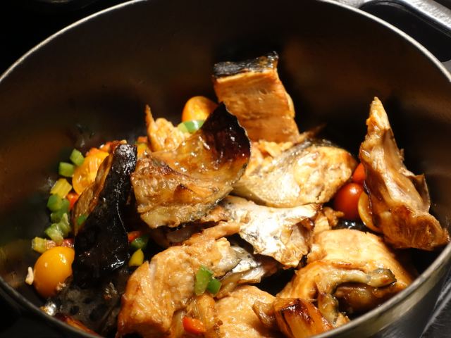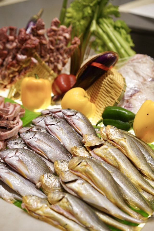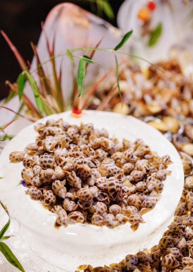 闽南沙地萝卜饭,泉州马鲛鱼花胶羹/例,破布子蒸水午鱼,桃溪老醋黑猪排 ,乌米蒸扇贝,九层塔焗明虾,石锅焖海参,茶壶黑蒜功夫汤/位