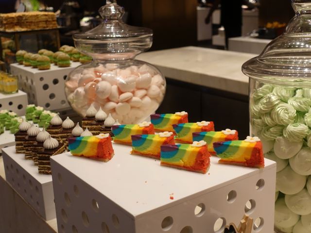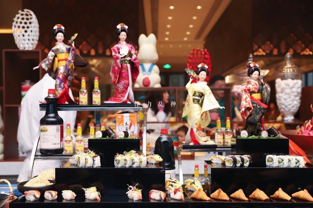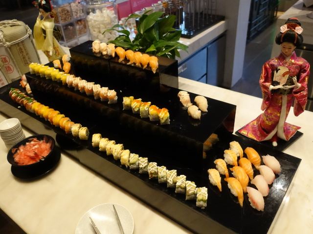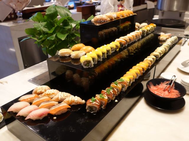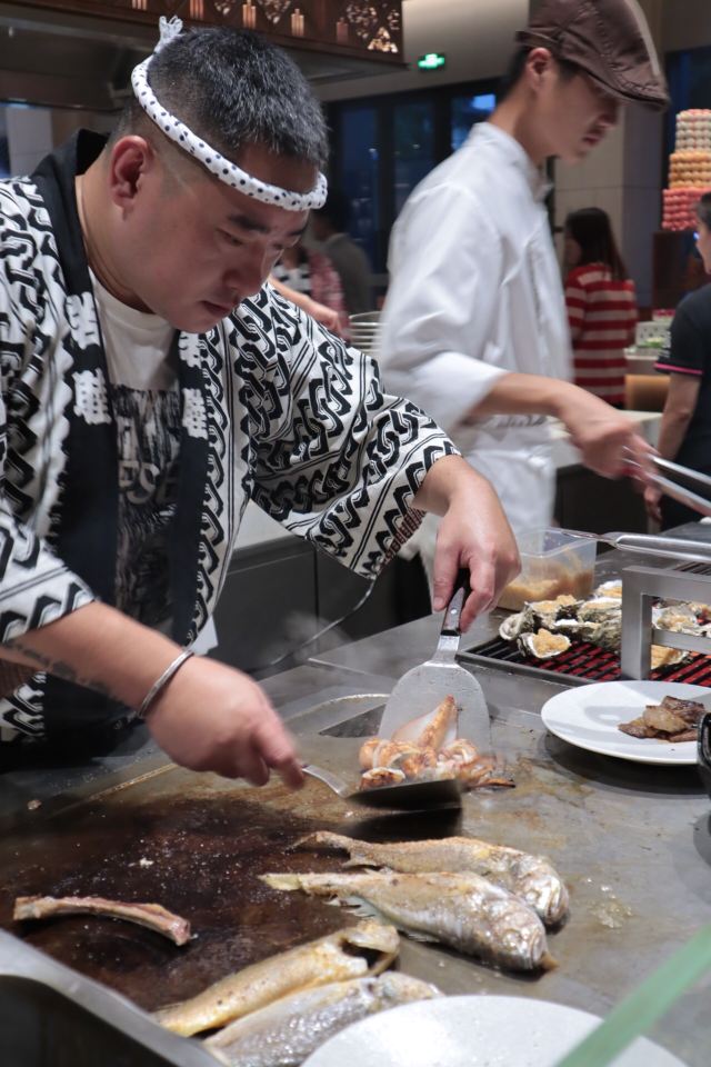 番茄看世界像我们这种什么都吃的,胃口又好的人,吃自助绝对是最划算的,何况还是一家格调、环境、菜品都不错的自助餐厅。 开车到希尔顿格芮,停到酒店自有的地下停车场,用餐领券有五个小时免费。餐厅位于一层大堂一侧,和习惯的自助餐厅相比,灯光比较柔暗,格调不错。餐桌椅二到多人,还有沙发座及包厢。 今次是日本料理主题,又赶上开渔仪式。服务生都很有礼貌,一些身穿和服迎宾员以及西服服务生都面带笑容,素质很高。 凑巧赶上开渔仪式,由两位穿着日式服装的大师傅现场分解一条50斤蓝鳍金枪鱼。当然见者有份拉,没人都排队去拿了一份名贵的蓝鳍金枪鱼刺身。除了蓝鳍金枪鱼,铁板烧、小龙虾以及鳗鱼也是他们家特色。只不过铁板烧现点现做需要一些时间。 当然中式面点、冷盘海鲜这些也是齐全的,最推崇的还是甜点了,他们家的甜点是目前吃过的自助餐中的佼佼者,比如拿破仑和抹茶蛋糕,我就很喜欢。而且还有小时候爱吃的棉花糖噢。 佳逸希尔顿格芮酒店·逸厨餐厅 坐标:龙虎山路6-8号(小白鹭艺术中心后,近曾厝垵书法广场)