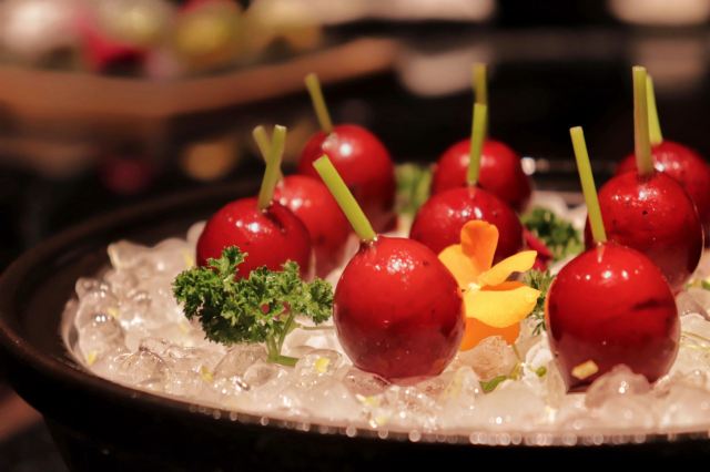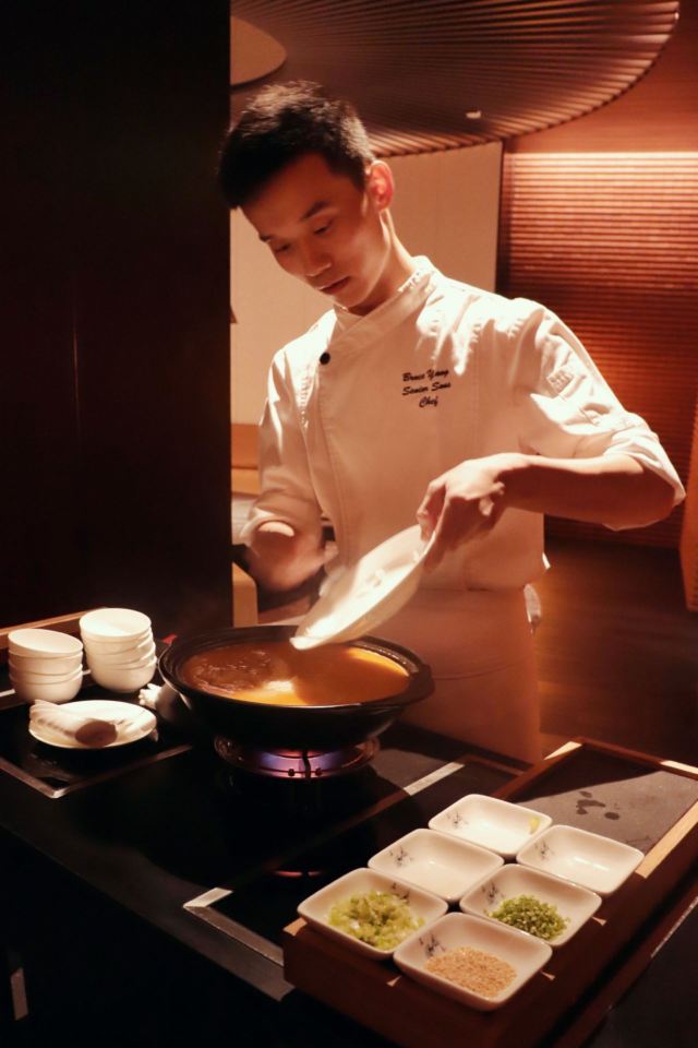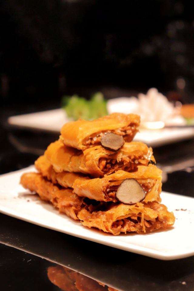 海皇龙虾汤爆炸饭,果木烤黑黄金片皮鸭,黑松露脆香素鹅,麻婆波士顿龙虾,葱油捞起银丝螺片,脆皮冰烧三层肉,冻花生汤,韭香浸长汀河田鸡,沉缸老酒浸罗氏虾,红鲟小炒龙牙官燕,椒香脆皮牛腩佐土咖喱,黑金流沙包,至尊宝塔肉,XO酱翡翠白玉明虾球,荷香神草蒸清远鸡,椒香妙龄乳鸭,糊辣水煮小黄牛,黑虎掌菌皇汤,干爆金钱牛柳粒
