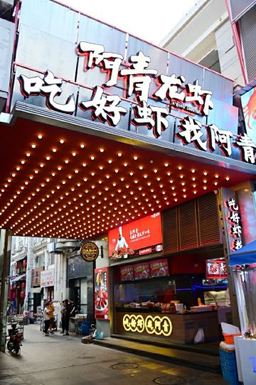吃小龙虾的时节又到了,告诉你一个好消息,一般人我不告诉他! 🌟吃小龙虾的季节又到了,无数喜爱小龙虾的食客们摩拳擦掌,准备大显身手,我也按捺不住对小龙虾的渴望,今晚就约上朋友们去大快朵颐,在厦门吃小龙虾,阿青龙虾是个好选择,在厦门开店多年,分店众多,全国有近30家分店,深受食客们的认可,阿青龙虾选用大名鼎鼎的湖北潜江小龙虾,品质优秀,生态饲养,干净健康,吃的放心!。我们今天去的是阿青龙虾(明发南门店),交通便利,位置优越,很快朋友们就陆续到达,欢聚一堂! 💎餐厅环境:招牌超大超醒目,远远就能看到,十分霸气。店内明亮整洁,时尚潮流,透明厨房宽敞大方,布局合理,巨大的小龙虾模型张牙舞爪,环境很棒。二楼还有好几间舒适大气的包厢,吃小龙虾也可以很优雅。 👧服务:服务热情周到,上菜很快,美味无需久等! 💝推荐菜品: 👉冰镇龙虾,一端上来就引起大家一阵惊呼,洁白的清雾缭绕,通红的小龙虾若隐若现,美不胜收。云雾散去,露出小龙虾的真容,个头颇大,体型强壮,色泽鲜红,还有晶莹剔透的冰块,美轮美奂。拿起一只,剥开虾壳,虾膏丰富,虾肉饱满,白净红润,温润如玉,让人垂涎三尺。将虾肉放入口中,口感紧实弹牙,滋味鲜美清甜,冰爽清冽,细细品味,那种美妙的感觉无与伦比! 👉油焖龙虾,一上桌就香气四溢,色泽通红油润,清亮通透,迫不及待吃上一只,鲜香滋味令人陶醉,让人爱不释手,吮指回味。 👉招牌麻辣龙虾,红彤彤的小龙虾配上红彤彤的辣椒,一看就让人食指大动,麻辣鲜香,十分过瘾,果然不愧是招牌! 👉十三香龙虾,小龙虾的鲜美跟十三香独特的滋味结合的天衣无缝,相得益彰,层次丰富,回味无穷。 👉经典蒜香龙虾,小龙虾的鲜美中带着麻辣的香浓和蒜蓉的清香,烹制入味,滋味均衡,令人惊艳,果然经典,好吃的停不下来! 🌺店里还有好多鲍鱼、牛蛙、烧烤、撸串等美味,也不可错过,阿青龙虾真是夜宵的好去处!