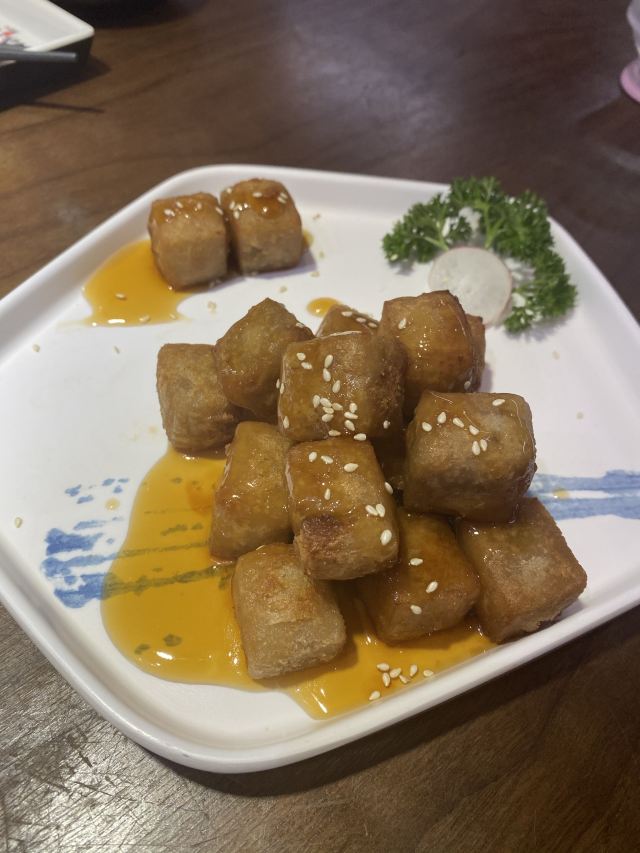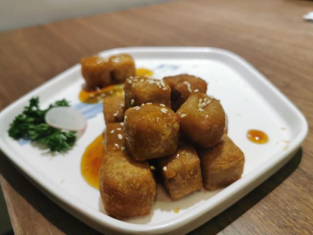 樊老饕的美食饕餮之旅秋冬季午后阳光正好,适合带老婆和宝宝出去放风晒太阳,今天一路成功大道开车来沙坡尾 在沙坡尾逛吃逛吃,然后到双子塔看夕阳,正要去找餐厅吃晚餐,往双子塔方向走,就发现这家隐海肴了。 门店看起来挺大的,整体落地玻璃,坐在里面吃饭刚好可以看海景! 这家店在商场内,逛商场里面也有个入口,一进去可以看到鲜活海鲜池,餐厅以四人桌为主,适合朋友聚餐、家庭聚餐等。 店内临近座位还用粉色白色的海洋球隔开,带孩子来吃饭,孩子们都很喜欢! 菜品 黑枸杞泡水的养胃茶,身为一个30岁的中老年人了,养生走起! 龙胆斑被大厨🏻精心切片摆盘,每一片鱼片搭配新鲜木耳,鱼肉很嫩,木耳鲜脆可口! 酒香红焖农家鸭,闻起来很香,中规中矩,肉质有点咬不动! 手工鼓汁芋方酥,老婆最爱芋头,外酥里嫩,一口香酥。 最后有肉有鱼,少不了的蔬菜,很嫩,好吃 隐海肴|海鲜餐厅(双子塔海景店) 📍地址:演武西路世茂海峡大厦商场182号 人均:100-120