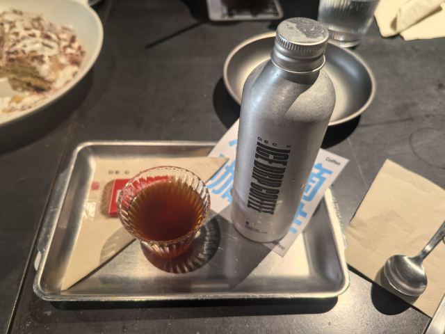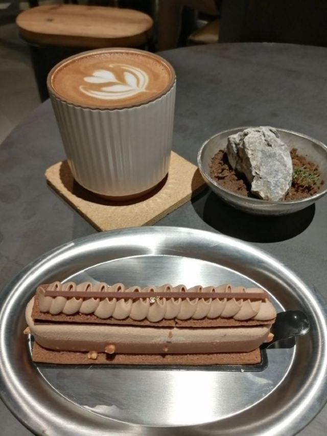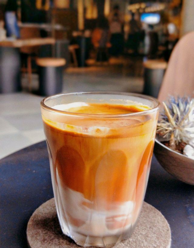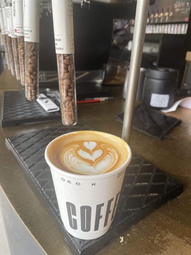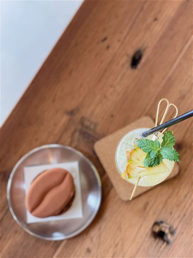 怪力_乱神⭐️最近在威斯汀酒店附近发现了一家下午茶新店。说它是咖啡厅,其实到了晚上又会变成啤酒吧,所以感觉还是蛮神奇的,氛围也很不错。 ⭐️这家叫做甲板Deck的咖啡厅,装修设计都是浓浓的工业风,尤其在午后,阳光从透明的窗子斜射进来的时候,喝一杯咖啡,感觉非常惬意。 👉🏻我去的时候店里是咖啡师小姐姐在上班,她推荐了一杯脏咖。脏咖从它的名字和外表就能看出端倪,还帮我换了燕麦奶。燕麦奶还真是第一次喝,口感很独特,很香醇。 👉🏻姜汁凤梨苏打是店里很有特色的人气担当。在夏天喝苏打水别提有多爽了,加入姜汁和凤梨后,感觉有了奇妙的反应,味道棒呆了。 👉🏻本来以为甜品会比较一般,没想到味道惊艳到我。浆果花园造型颜值很不错,口感更是层层叠叠。 👉🏻另外一款造型跟咖啡豆一样的甜品,名字就叫做【咖啡豆】。脆脆的表皮里面包裹着的是口感绵密的慕斯,咖啡的味道很浓郁,如果连着咖啡燕麦饼干做成的饼底一起咬下去会更棒。 👉🏻临走的时候小姐姐还调了一杯抹茶拿铁,抹茶绿看起来很治愈,喝起来也很好喝,爱了爱了!