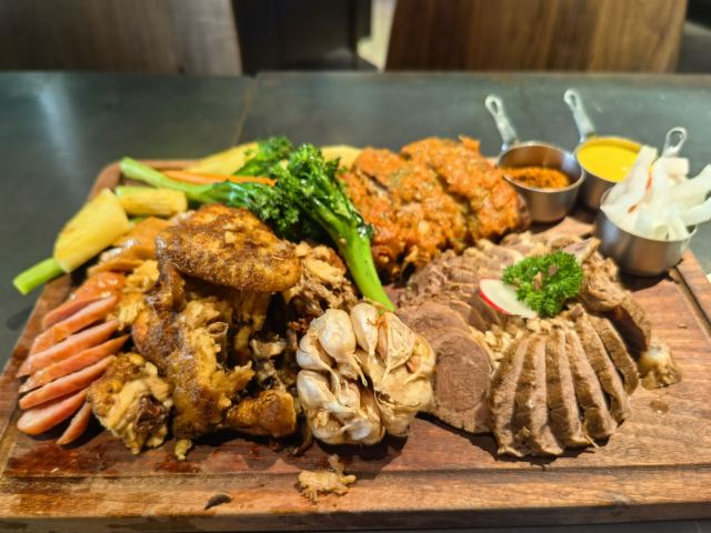 YoYo_9W8T4E1I雨中私语·氛围与味觉的双重共鸣 微雨洒落在落地玻璃之外,雨帘若隐若现,甲板DECK的大堂宛如一座柔光艺术馆。我们——两位一路并肩的姐妹,仅凭一个“打工人套餐”,却在这里坐足整个下午。 • 空间氛围 甲板DECK以工业风与热带植物交织,长桌与隔间并存,既能静享私密,也能参与热烈。雨声与低语,与店内暖黄灯光相互映衬,如同一幅流动的水彩画。 • 甜点序曲:开心果大理石蛋糕 入口即化,坚果的细碎在舌尖跳跃,淡淡奶香与绿色果仁的清新,如同姐妹间的悄悄话,甜而不腻。 • 主菜合奏:大肉盘 烤至微焦的肉排,层层肉汁在刀叉间绽放,伴着微辣蘸酱,每一口都是热烈的拥抱。我们相视一笑,满足感在唇齿间蔓延。 • 咖啡尾声:冰滴咖啡 冷冽而醇厚,像雨后初晴的空气,将刚刚的浓烈拉回宁静。凝视杯中深棕,我们在沉默里延续对话。 • 贴心服务 店员小哥哥笑意温暖,主动推荐茶香明前龙井小麦精酿;那一抹茶香扑鼻,丝毫无苦,让本不嗜酒的我们也心甘情愿为之举杯。 微雨未歇,我们却已沉醉在这场姐妹专属的城市漫游。