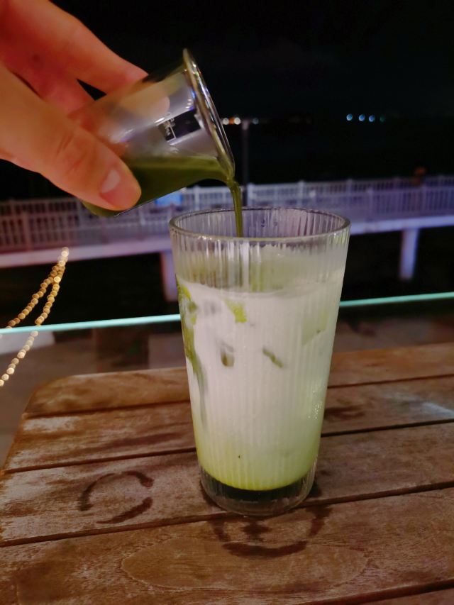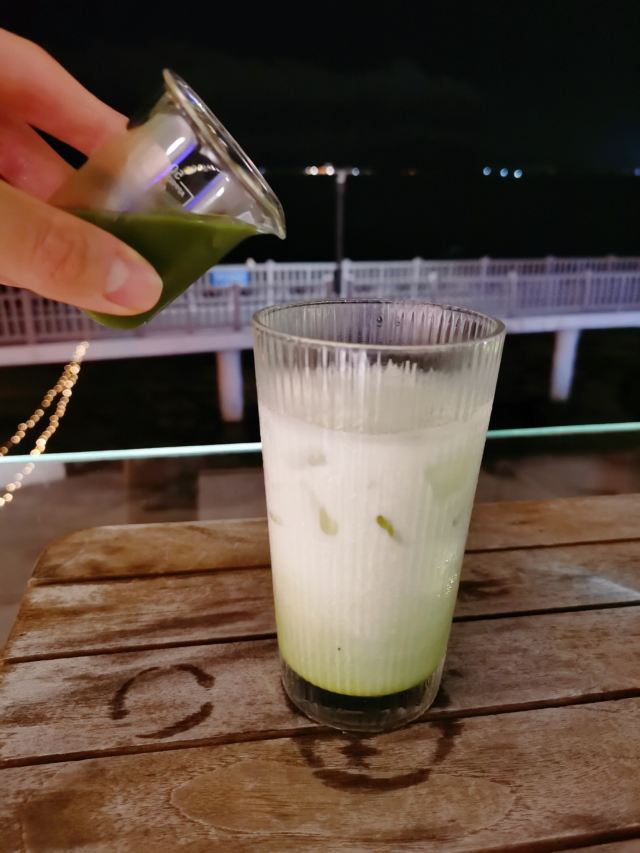 不知所云18住店quan第16家 🏖️180度海景咖啡厅📸 🏠ONLYONE颖海咖啡位于环岛南路264号,坐拥胡里山炮台旁的海边。🎁宽敞明亮的用餐空间、异域风情的圆形大拱门、莫兰迪色调的装修风格,有一种穿越到圣托里尼的感觉,梦幻又浪漫❤️。 👀咖啡厅比我想象中大了不少,有露天天台、靠海边的观景区和室内空调区,可以根据自己的喜好选择位置。餐厅还不停地播放周杰伦的歌曲🎶,满满的回忆杀。 🌿仲夏夜,凉风习习,在海边的咖啡厅,吹着海风、听着浪花声、放眼一望无际的海景、欣赏美轮美奂的夜景,好好让自己放松下,静下心来好好品味慢生活,超惬意超美好🌸。 🍵抹茶拿铁:感觉牛奶放了不少,喝起来不怎么苦涩,反而略微有点甜,很喜欢这样的醇厚香甜口感,还有清香扑鼻的抹茶味。 💰人均大约20元,这家不仅仅还有提供咖啡,听说也有提供正餐,以后有机会去试试😍。